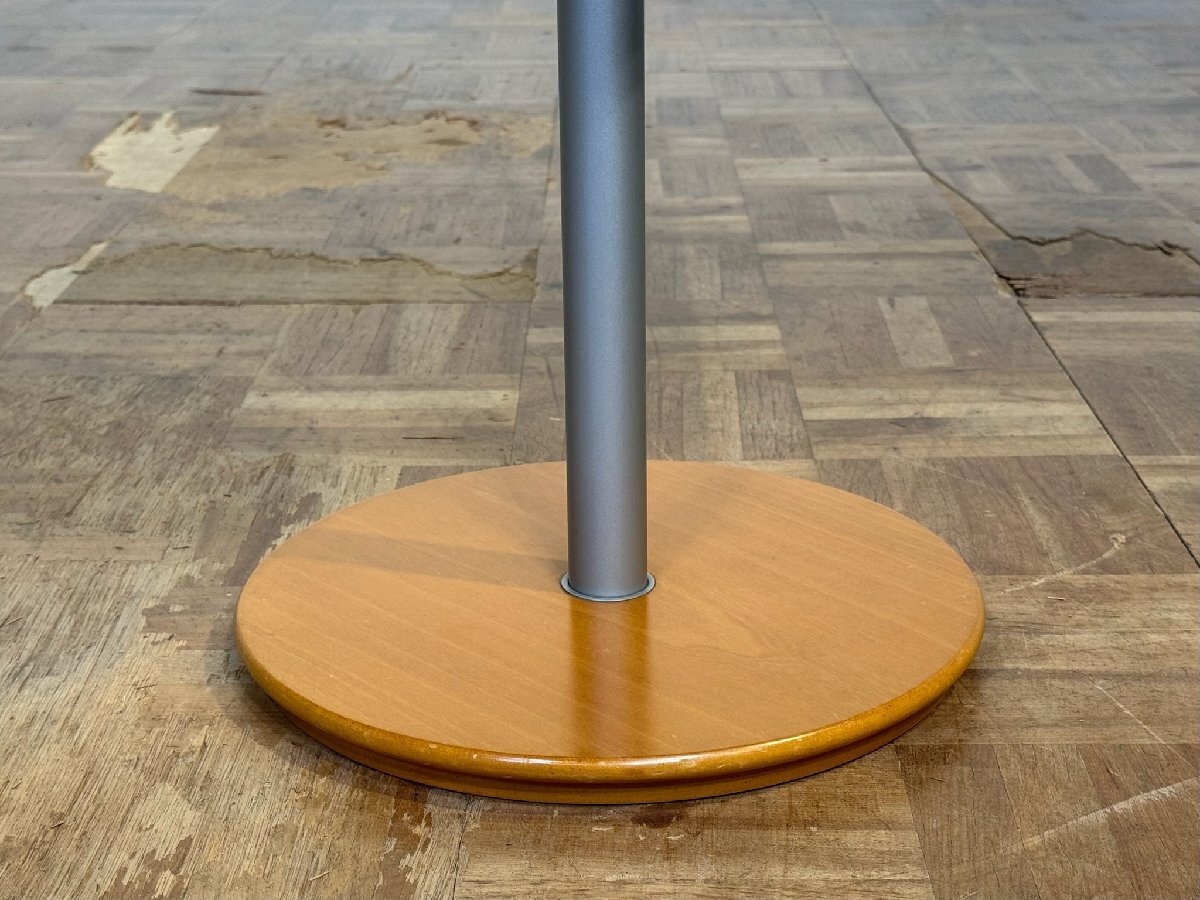 凛とした清楚な雰囲気とブラウンイエローの温かなカラーリング、台座と天板の緩やかなカッティングと、絶妙なバランスで設計されており、ほっそりした支柱の静かなシルバーが禅とした印象を鳴らしています。