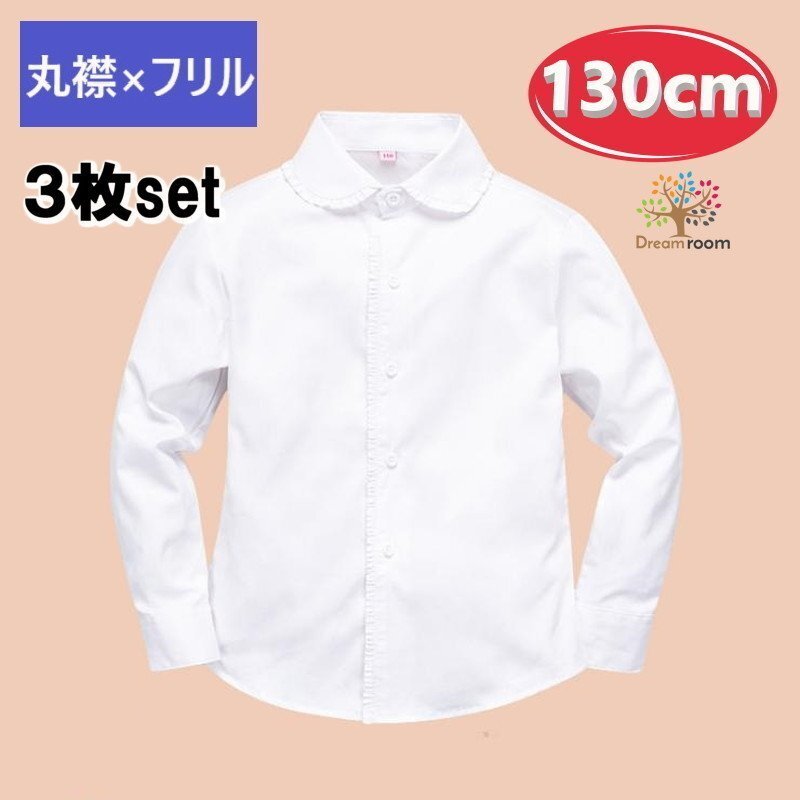 1スタ☆お得な3枚set★綿100% 丸襟×フリル ブラウス【130cm】ワイシャツ 白シャツ 学生服 フォーマル 冠婚葬祭 制服