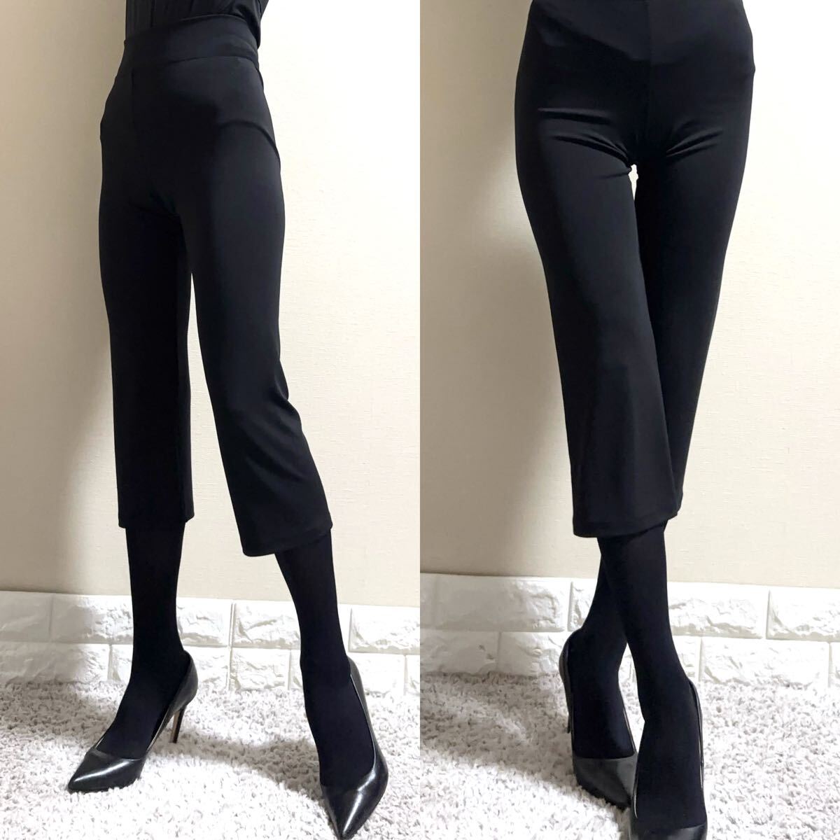 膝下丈の新鮮なバランスです。手洗いOK!皺にほとんどならず、形崩れしない上部なレギンスパンツ。