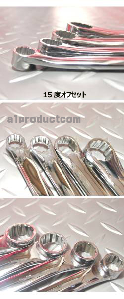 オフセット15度のロングレンチ、日本車用サイズセットです。