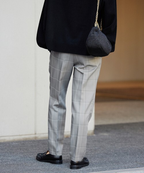 シンプルなグレンチェックで馴染みが良く、幅広いスタイリングにマッチします。