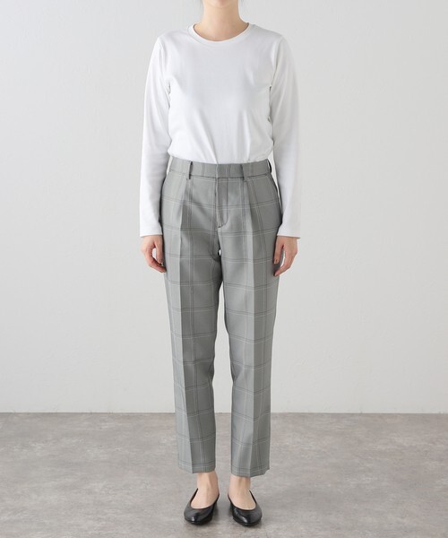 ワンタックですっきりとしたテーパードシルエットのパンツ。
