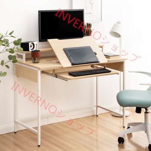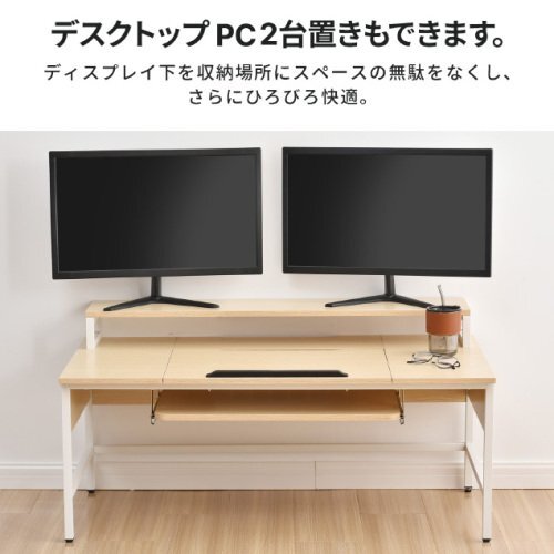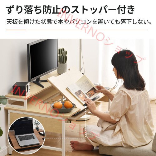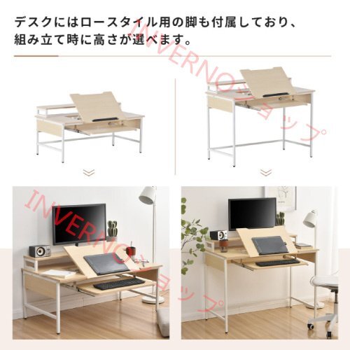 【ナチュラル】パソコンデスク ハイタイプとロータイプに切り替え可能 多段階調節ホルダー付き オフィスデスク 木製 学習机 いくつのPC設備