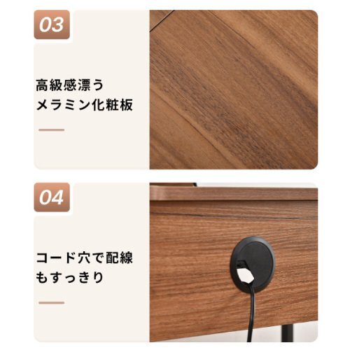 • 1.【木目の立体感までを再現した美しい木目模様天板】なめらかな手触り天板は高級感といい肌触りが兼ね備える上、水や汚れに強く、耐久性も優れて、お手入れも簡単です。汚れた時もサッと簡単に拭けます。