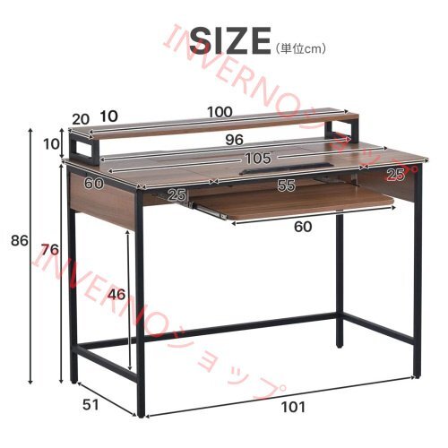 • "【商品仕様】 商品サイズ:幅101×奥行51×高さ86cm 重量:21.2kg 天板静止耐荷重:約80KG ラック静止耐荷重:約15KG 素材:天板: MDF板(メラミン化粧板) フレーム:スチール(水や汚れ、摩擦に強い粉体塗装)