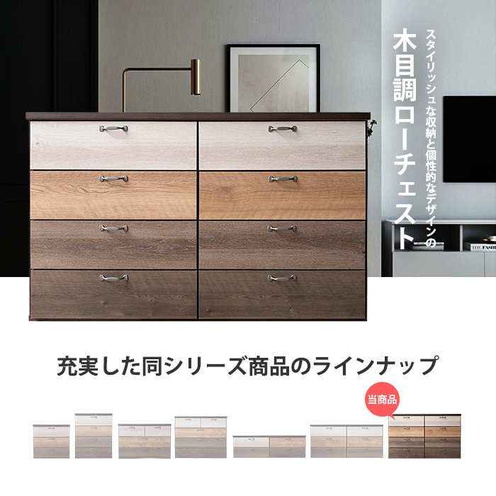 チェスト タンス ローチェスト たんす 木製 おしゃれ グラデーションカラー 4段 幅117cm 収納家具 完成品