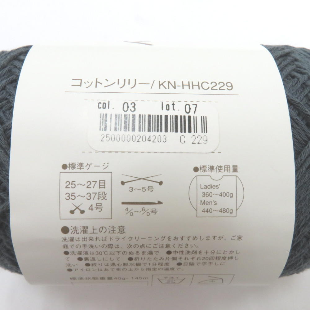 | HOBBYRA HOBBYRE ホビーラホビーレ 毛糸 Cotton Lily コットンリリー 色番03 グレー系 8玉セット KN-HHC229 コットン糸 手芸材料 編み物 |
