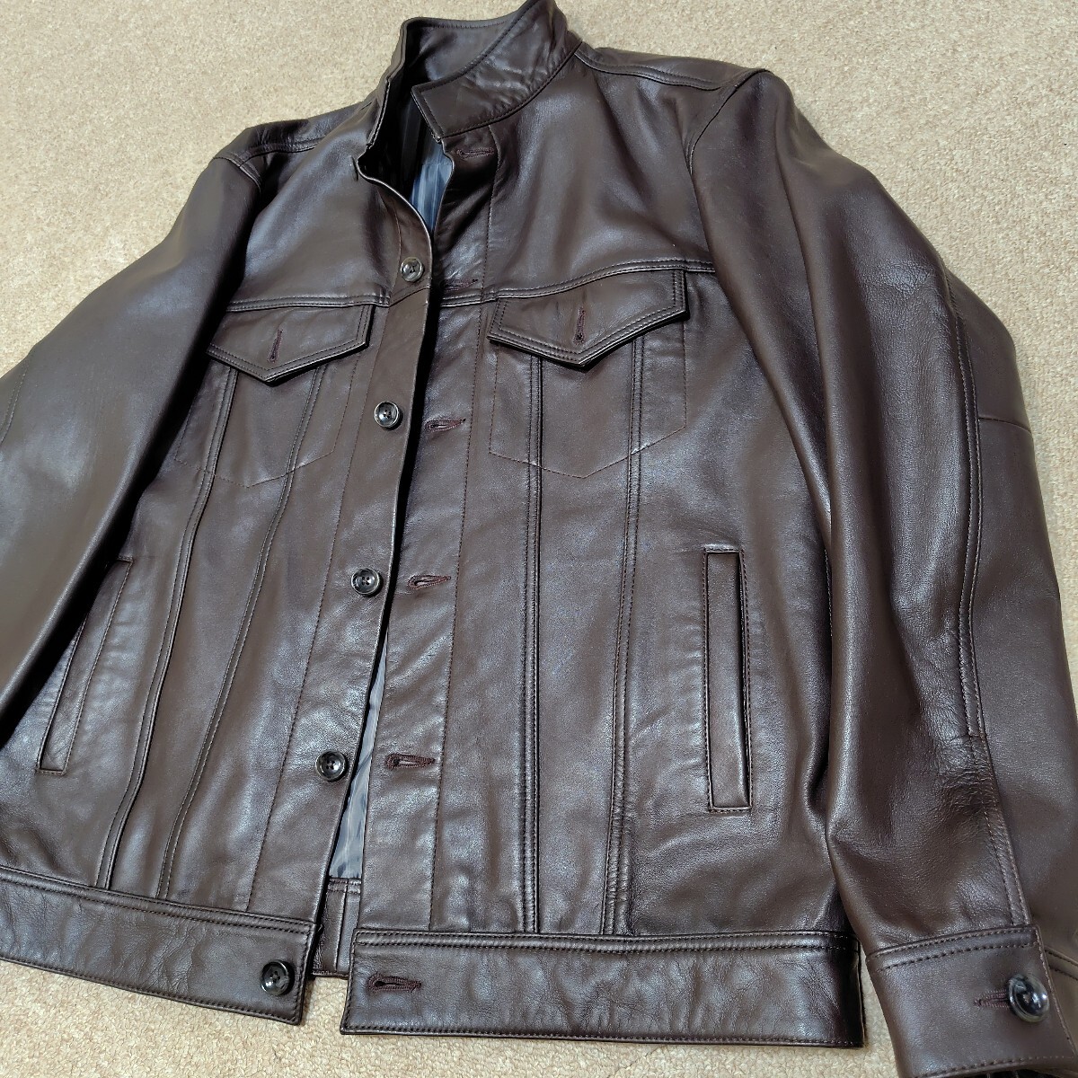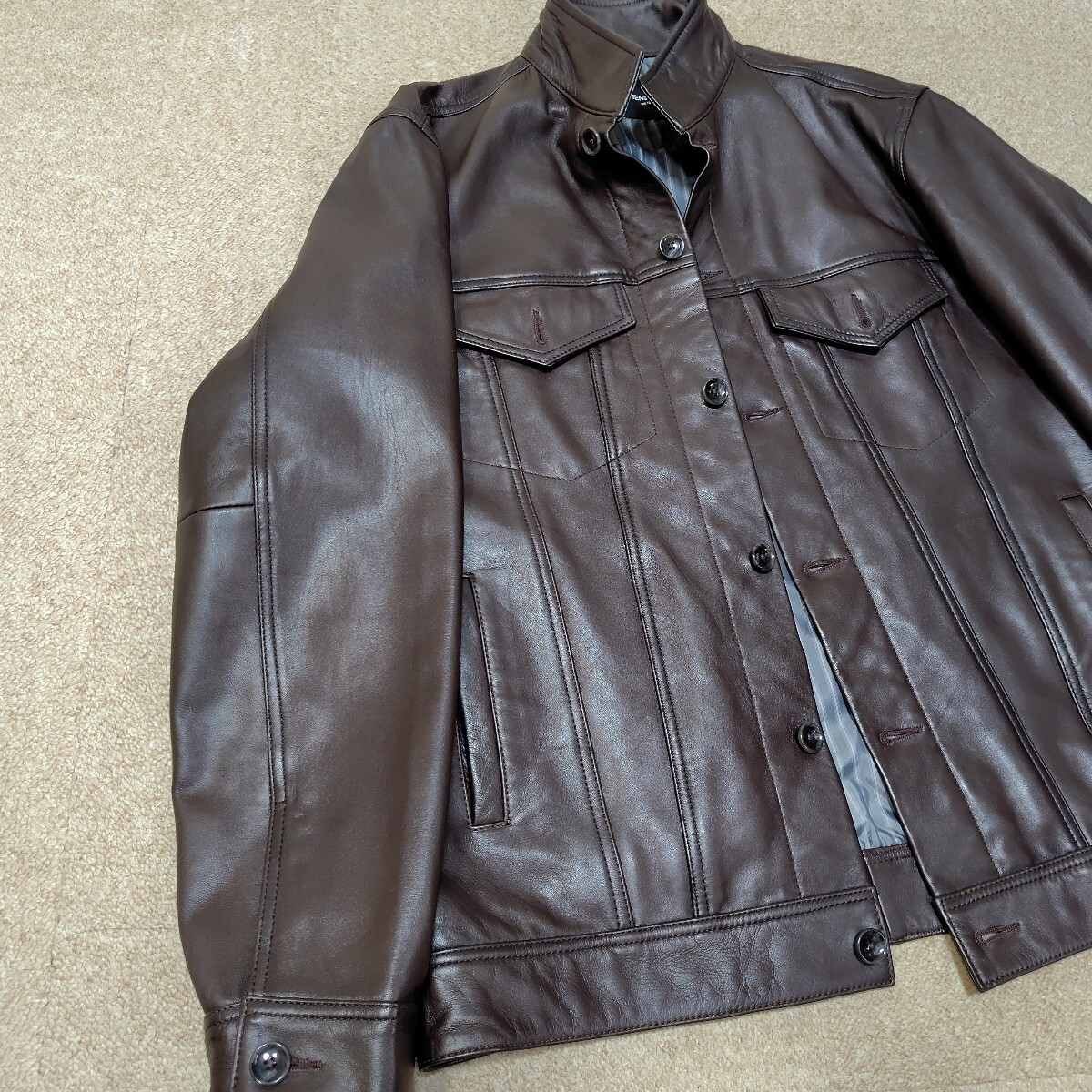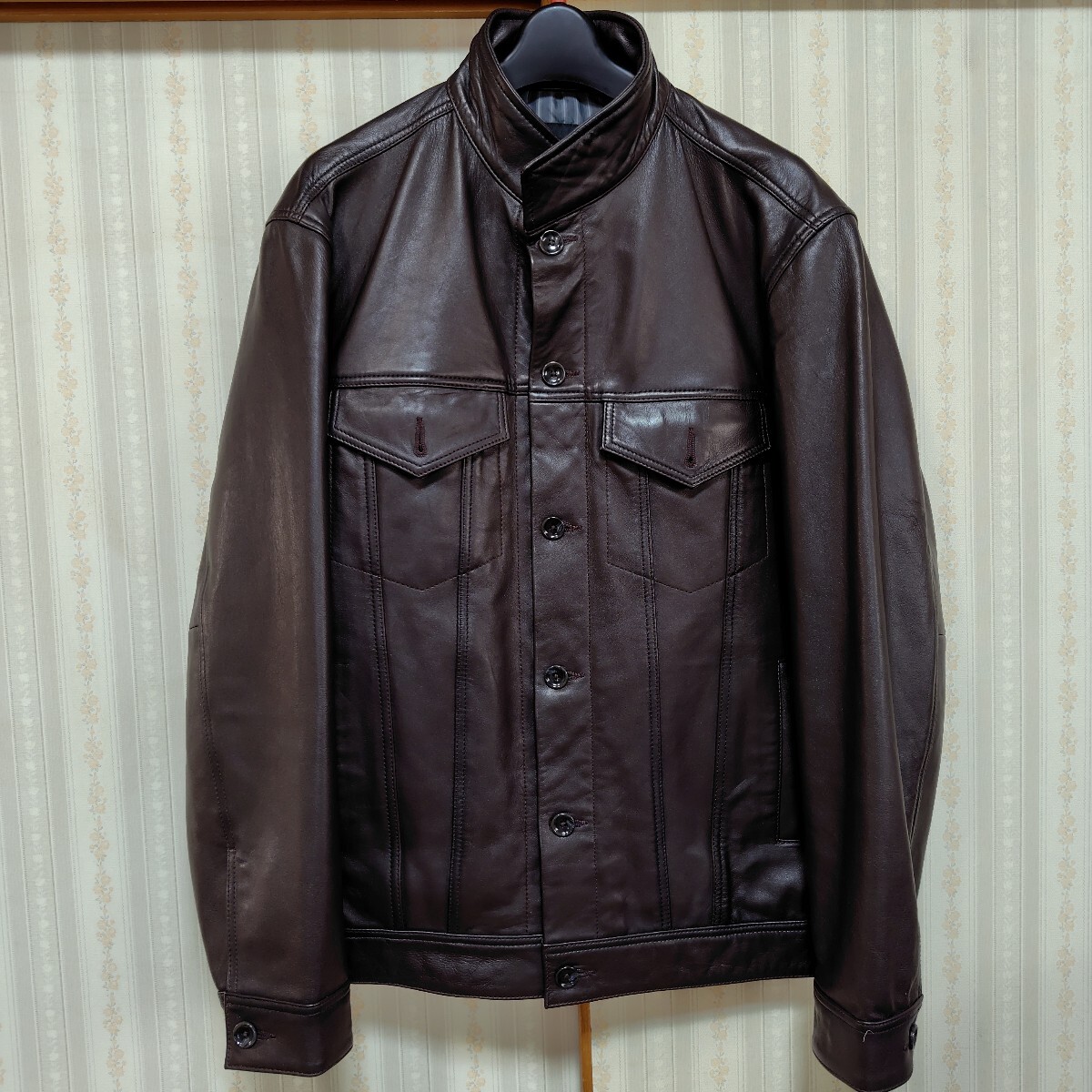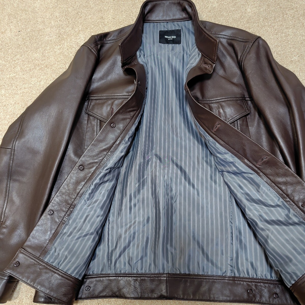 MEN'S BIGI メンズビギ シープレザートラッカージャケット ブラウン size XL 「非常に美品」