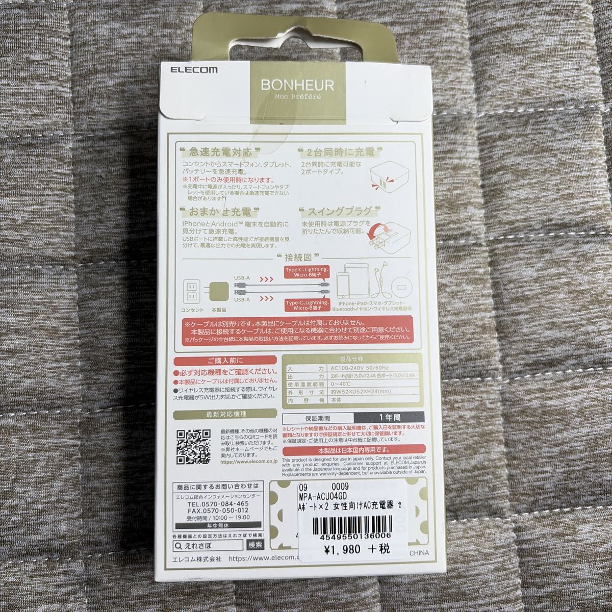 ELECOM BONHEUR 急速充電対応 2台同時充電可能な2ポート(USB-A)タイプ 未開封 匿名配送