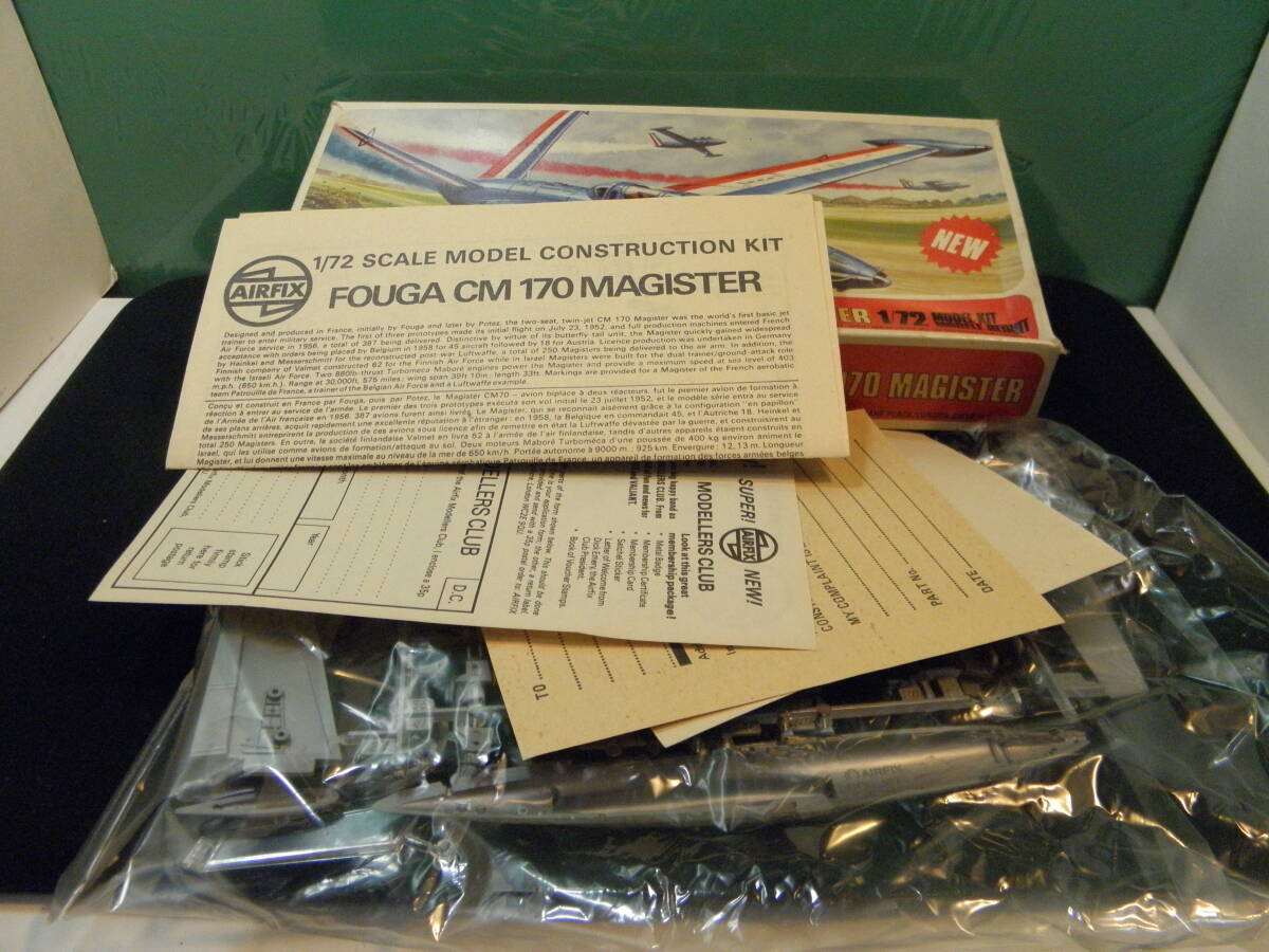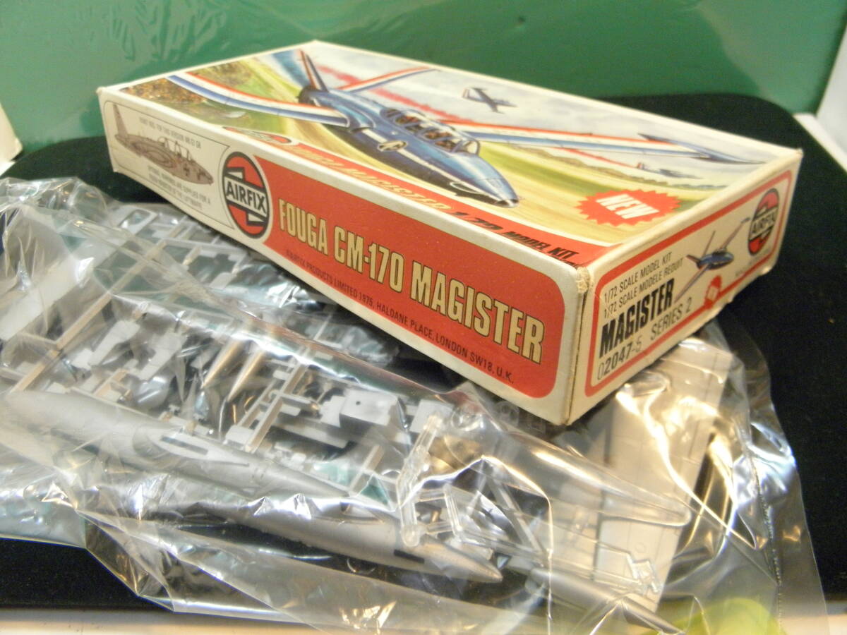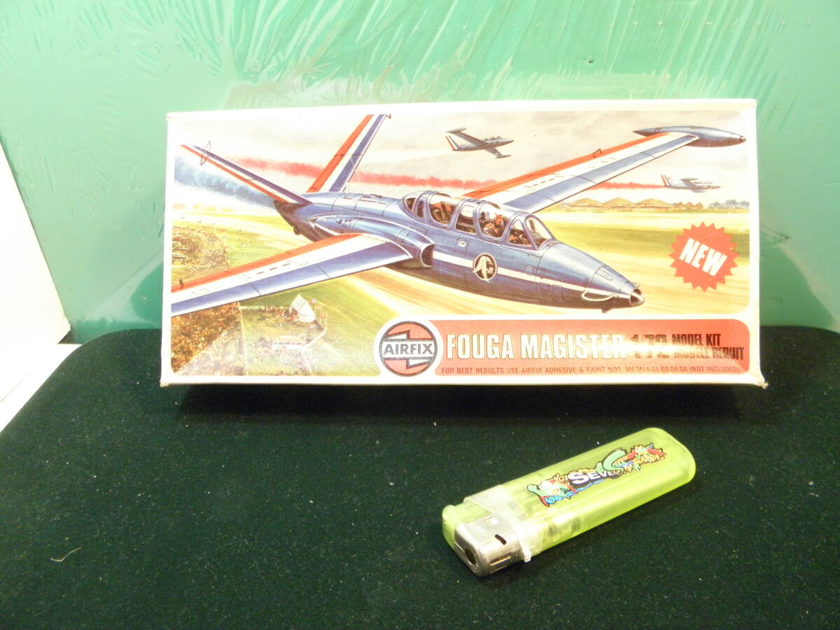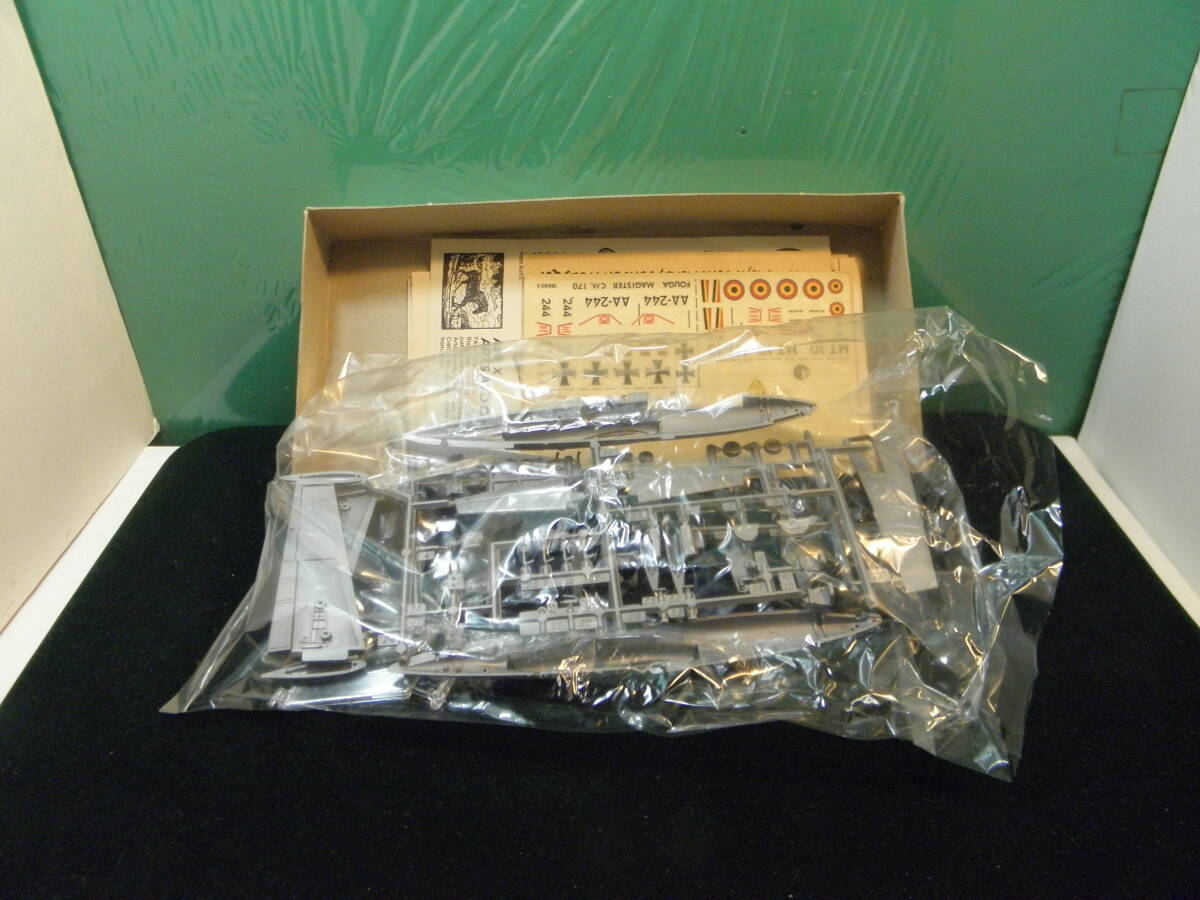 フランス軍開発の世界初のジェット練習機だそうです。1975年のモデルで箱は経年の痛みがあります。一度開封したようですが、ざっと見たところ、欠品は無いようですが、保証の限りではありません。デカールは古すぎて使えないかもしれません。
