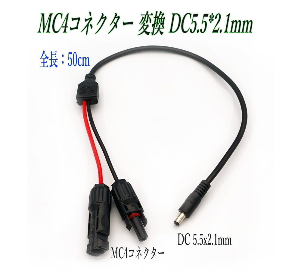 MC4型コネクター DC 5.5mm x 2.1mm 長さ50cm ソラーパネル充電ケーブル