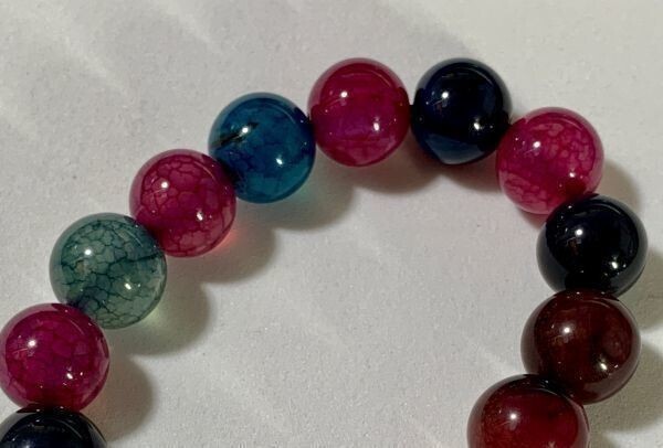 (初心者でもブレスレット作りはとても簡単です。通して結んで結び目を珠の中に隠すだけ)