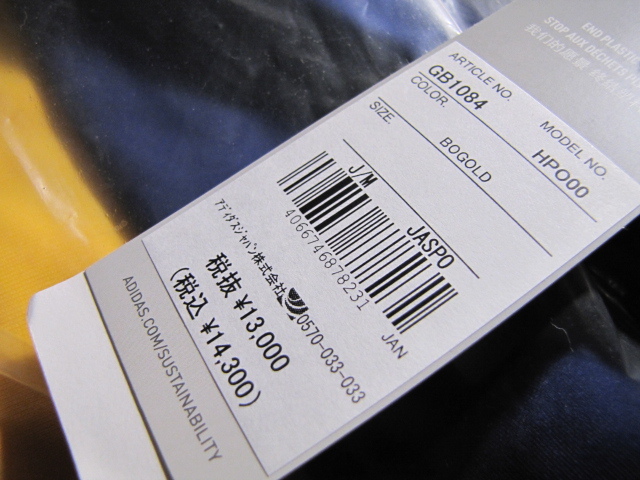 ☆adidasジャパン正規品、新品未使用タグ付き。ボールドゴールド GB1084