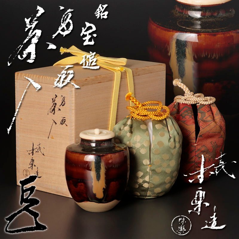| 【古美味】十三代亀井味楽造『而妙斎書付』高取茶入 銘:宝槌 茶道具 保証品 |