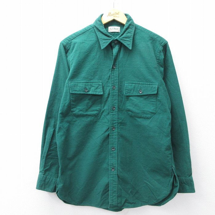 【商品名】 L★古着 エルエルビーン 長袖 ヘビー フランネル シャツ メンズ 80年代 80s コットン 緑