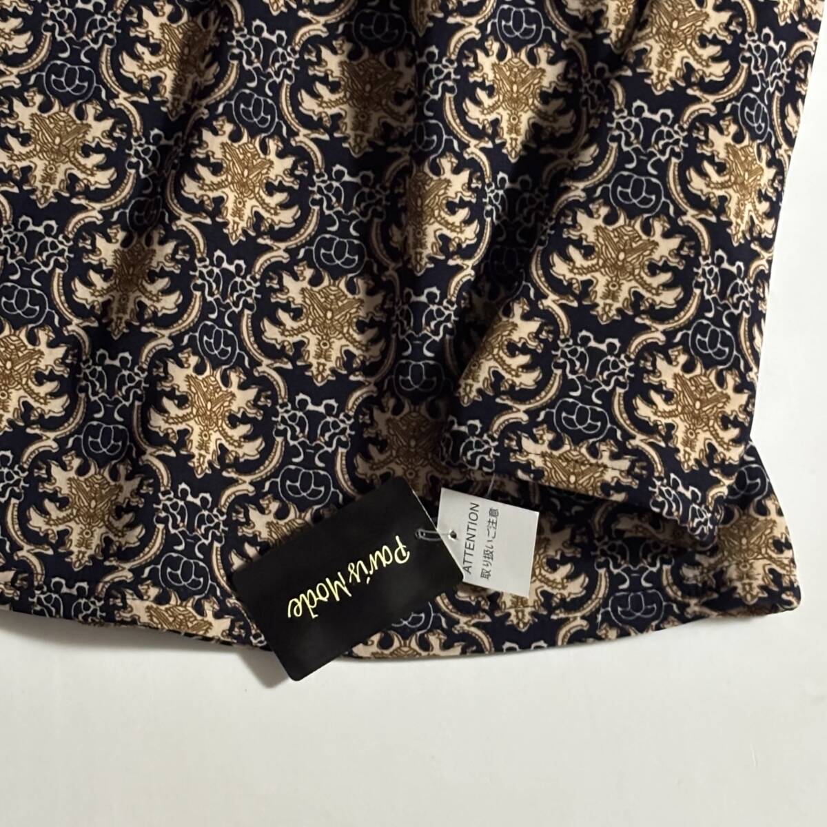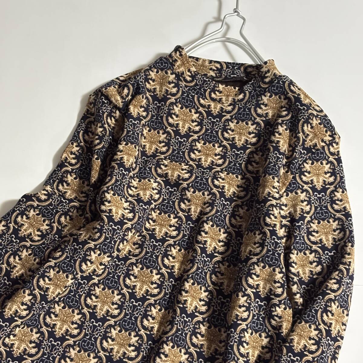 新 paris mode 大きいサイズLL // 唐草柄 濃紺系 裏フリース プルオーバー チュニック ⑥