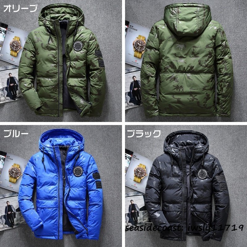 冬新品*メンズ ダウンジャケット 厚手 スキーウェア ダウンコート パーカ ワッペン付き 迷彩柄 ブルゾン アウトドア 防風防寒 ブラック 3XL