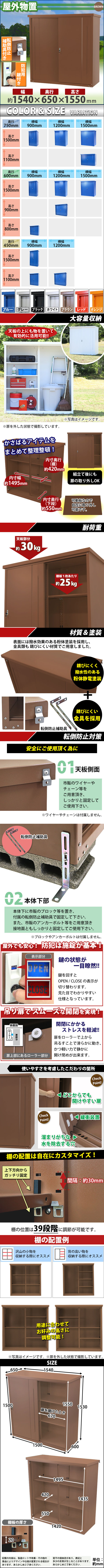 | 商品名 | 送料無料 屋外物置 スチール製 家庭用収納庫 鍵付き ブラウン 幅約1540mm×奥行約650mm×高さ約1550mm 倉庫 納屋 物置き スチール物置 スチール収納庫 ガレージ 収納 可動棚 吊り戸 吊戸 吊り扉 上吊り 吊引き戸 庭 ガーデン 茶 monookishw15d60h15br |