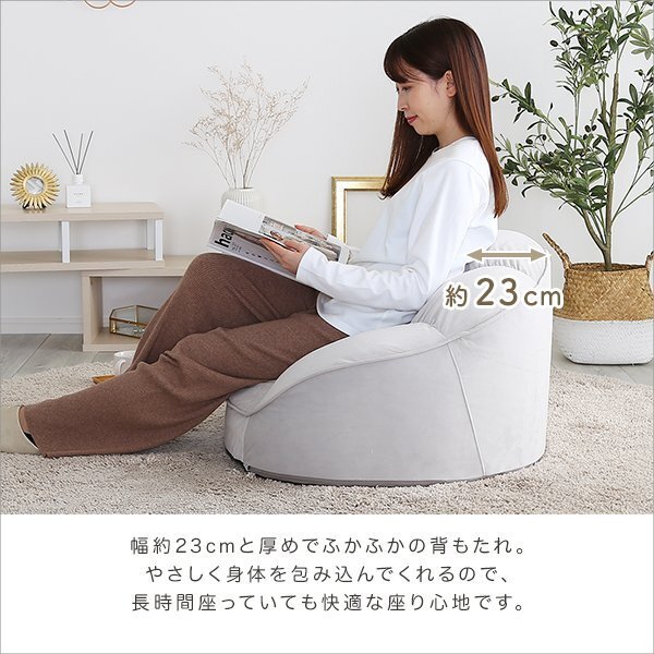 | クロワッサンのようなかわいいフォルムで、お部屋を彩ります。 背もたれにボリュームがあるのでしっかりと体を預けて座ることができます。 |