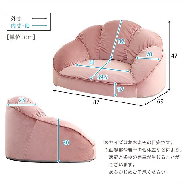 | 【カラー】 ベージュ、グリーン、グレー、アイボリー、ピンク 【サイズ】 幅87×奥行69×高さ47cm 【重量】 6.5kg 【素材】 主材/張地:ポリエステル100% 中身:ウレタン 【梱包】 サイズ:82×49×66cm、重量:7.2kg 【完成品】 届いて直ぐ使えます。 【ご注意】 ・サイズ、重量は概算です。 ・商品カラーはご使用のモニターによって実際の明るさや色と異なって見える場合がございます。 |