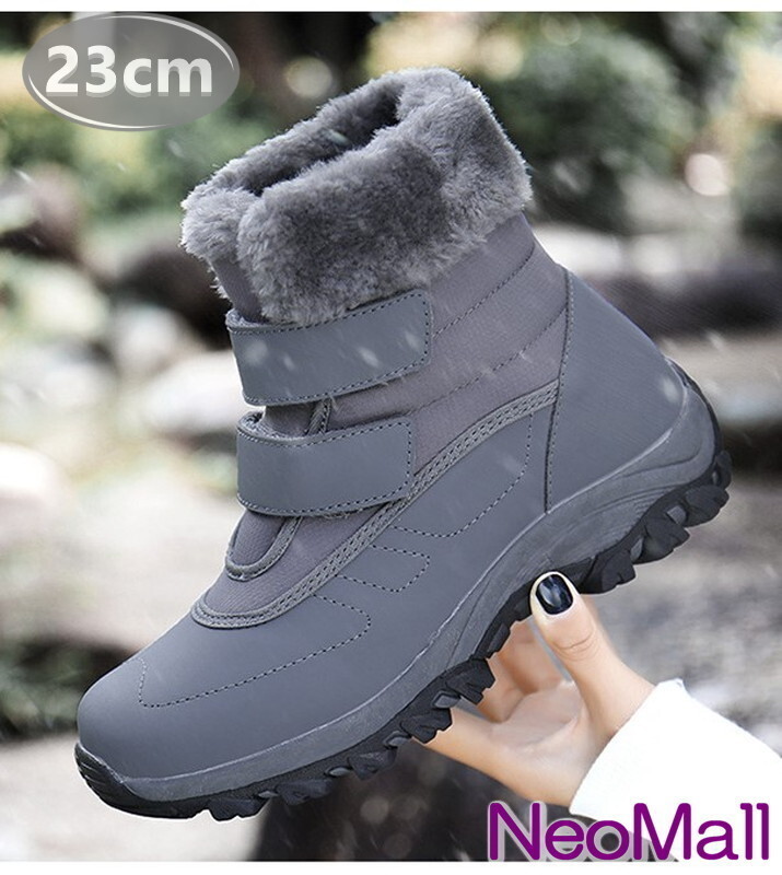 レディース スノーシューズ 【958】 グレー 23.0cm ムートンブーツ スニーカー ウィンターブーツ 裏起毛 防水 防寒 防滑 冬用靴 綿靴