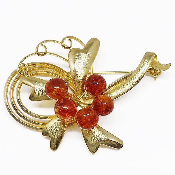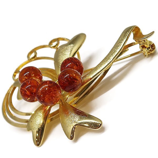 DKG★送料無料 BVA710★ アンバー 琥珀 デザイン ブローチ 琥珀ブローチ