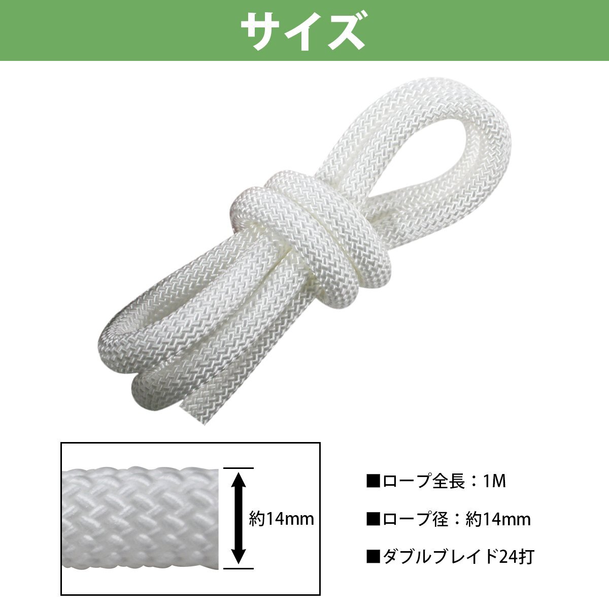 1m ~ 切り売り 24打 14mm 係留ロープ フェンダーロープ ダブルブレイド 白/ホワイト マリンロープ 船 係船 ロープ 14ミリ
