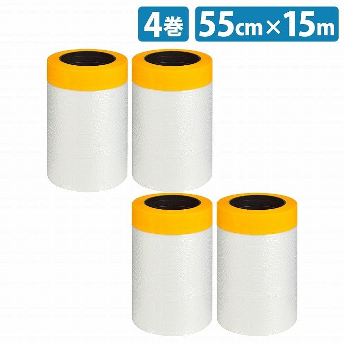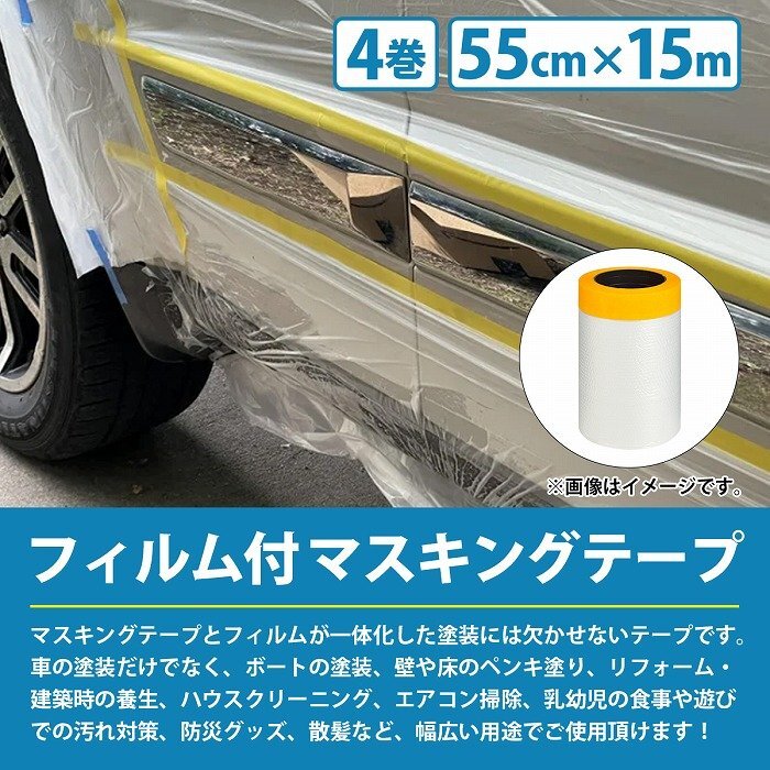 4本set『長さ15m×幅55CM』フィルム付 マスキングテープ 板金 塗装用 養生 保護 フィルム テープ 塗装 マスキング シール付き