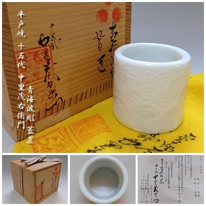 【B-14】平戸焼 十五代 中里茂右衛門 青海波彫 蓋置 共箱付 茶道具 | |||