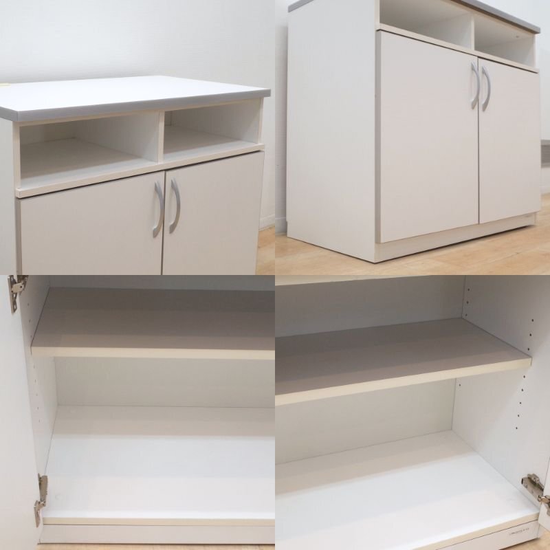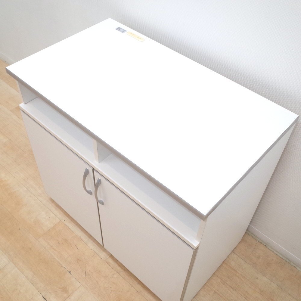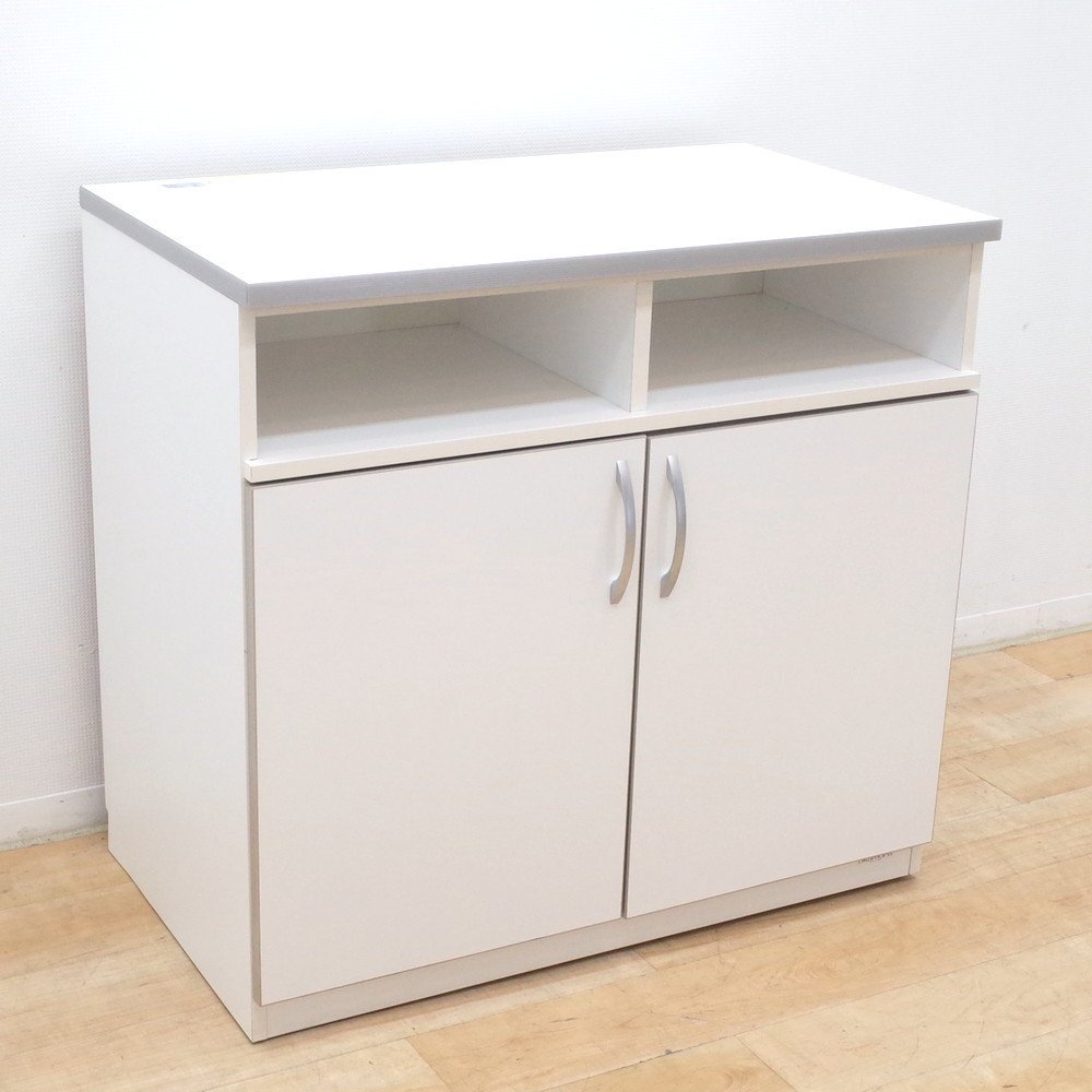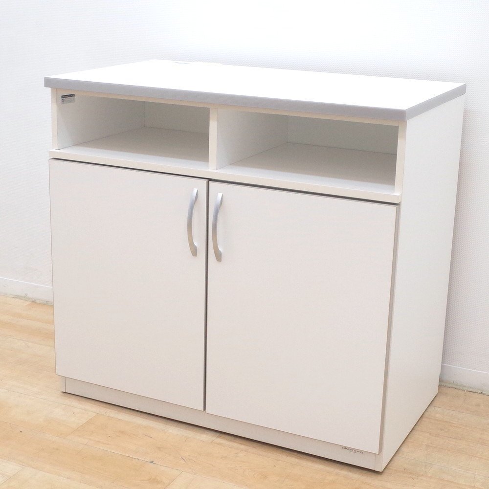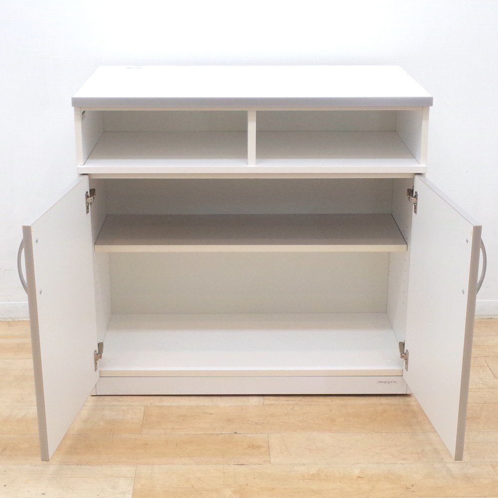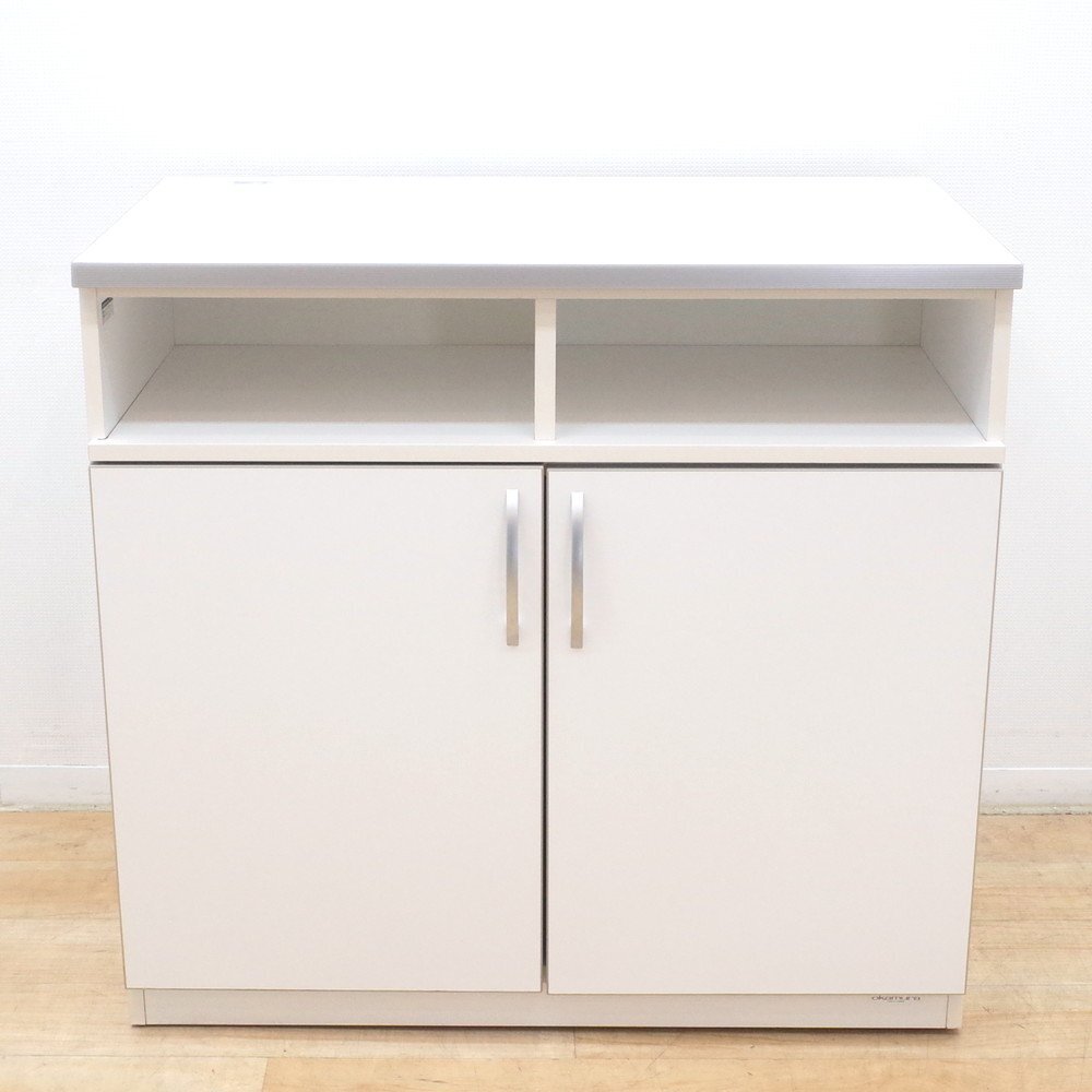 オカムラのキャビネットが入荷いたしました。お色味はホワイトです。 幅90cm、奥行52cmのコンパクトなキッチン収納庫。 天板にコンセントが2口あり、コーヒーメーカーやケトルを置くことが可能です。 扉内は可動棚になっているので、収納物に合わせて自由に高さを調整できます。 調理器具やストックを収納できる便利なカフェキャビネット。 カウンターの増設やキッチンの収納庫にいかがでしょうか。 |