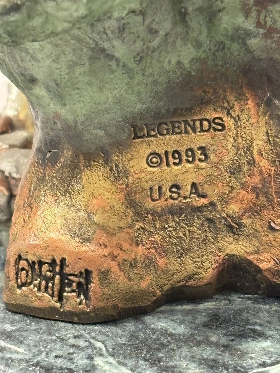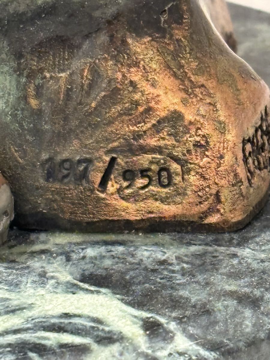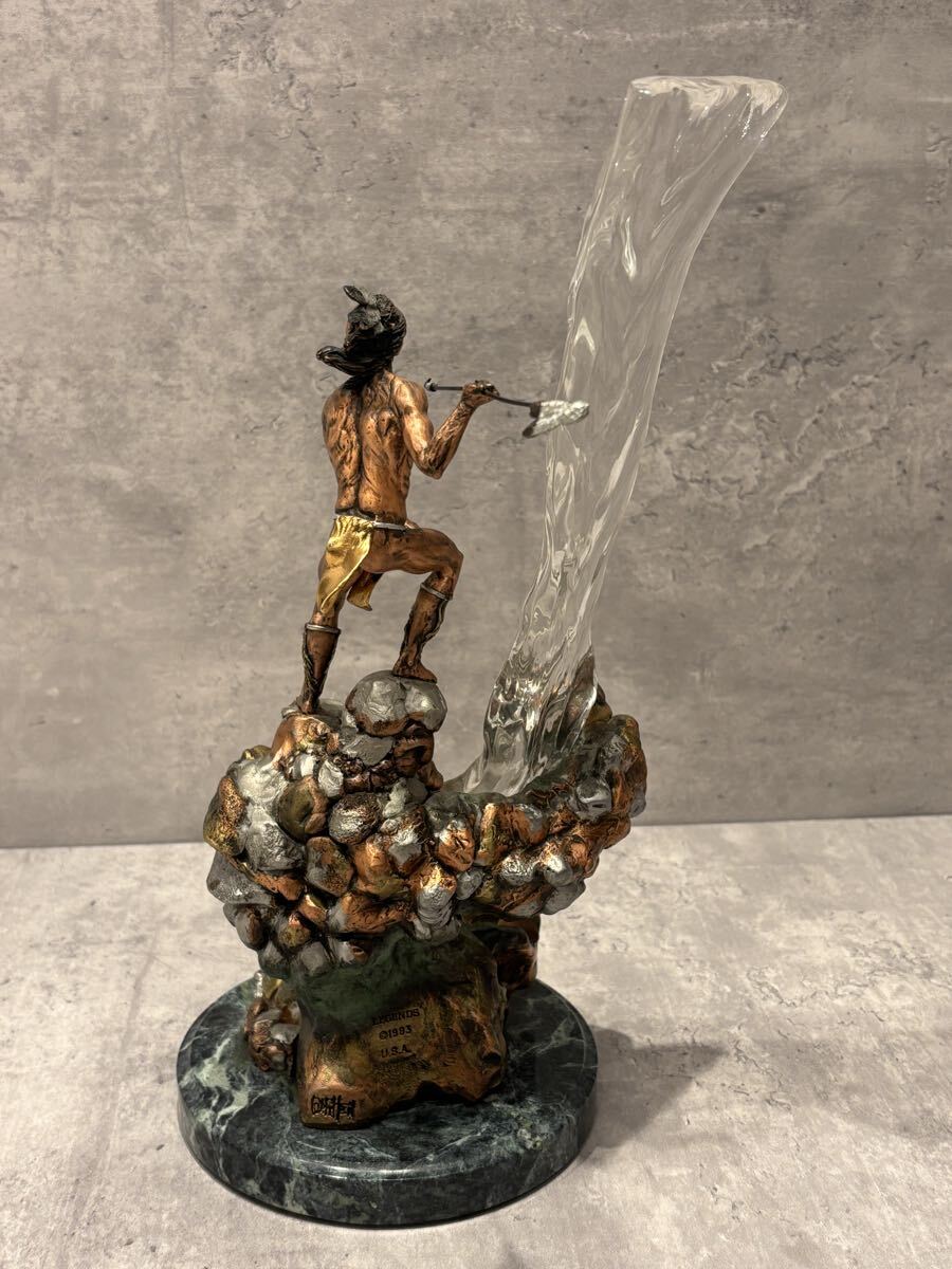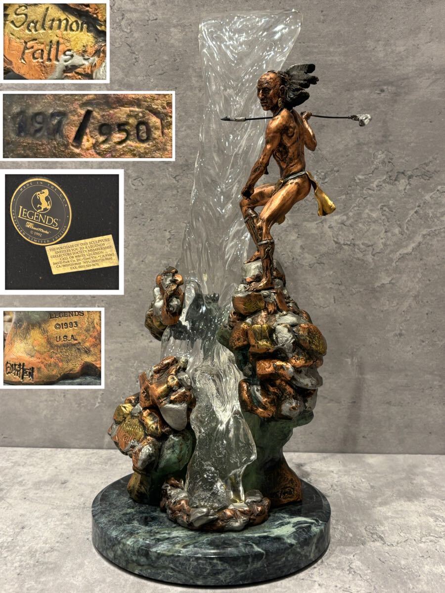 ◇トレモ◇米国彫刻家【Willy Whitten/ウィリー・ウィッテン】1993年 ブロンズ 世界限定950点 『Salmon Falls』 クリスタル・大理石台座 高さ35㎝ ネイティブアメリカ