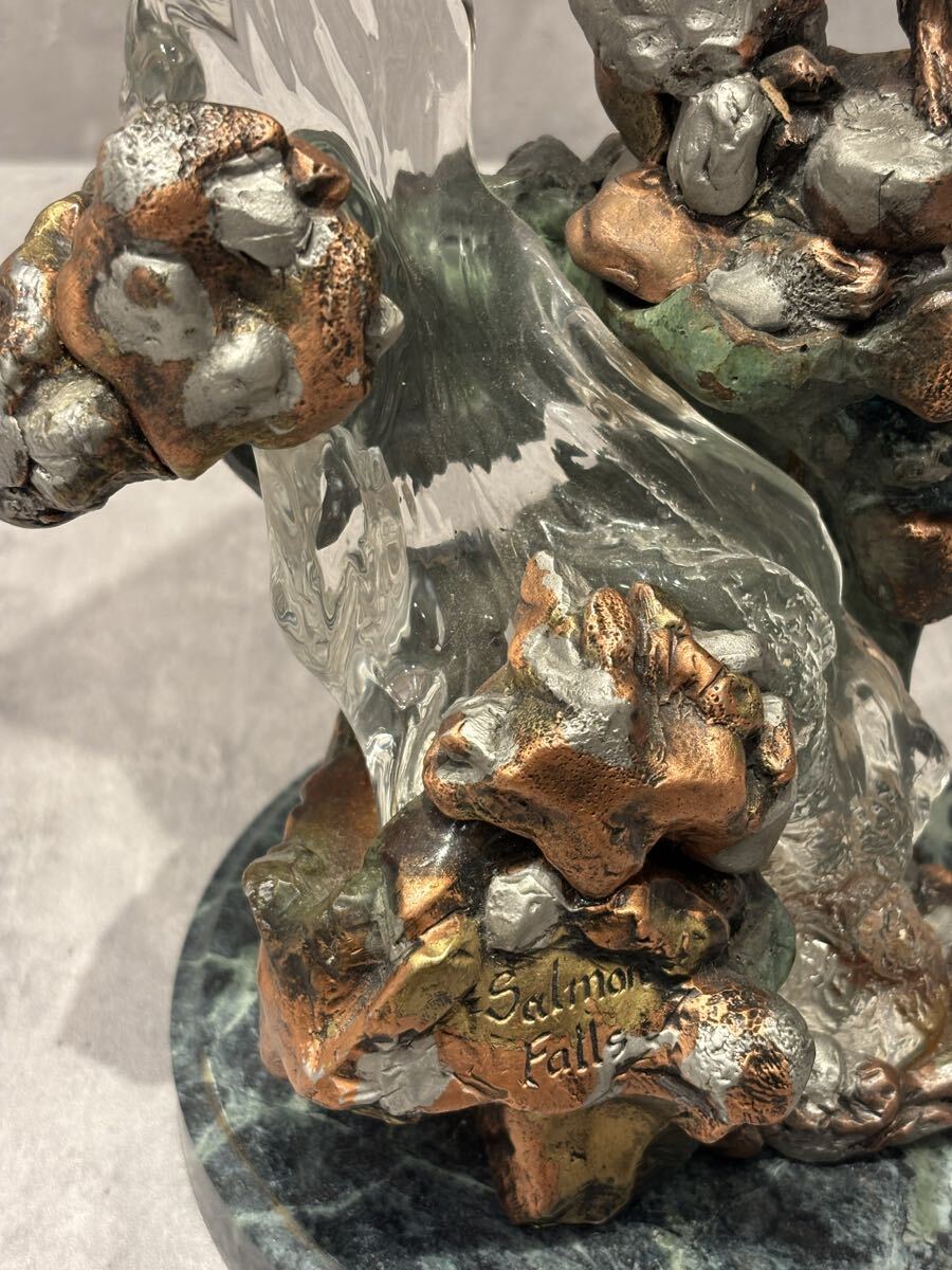 ◇トレモ◇米国彫刻家【Willy Whitten/ウィリー・ウィッテン】1993年 ブロンズ 限定950点 『Salmon Falls』 クリスタル 高さ35㎝ アメリカ