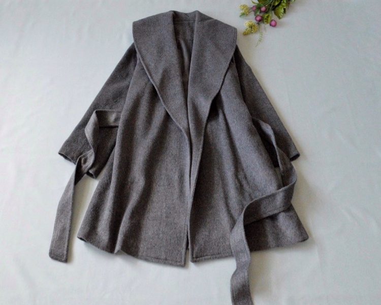 ウール混ベルト付きショールカラーシンプルなショットコート♪