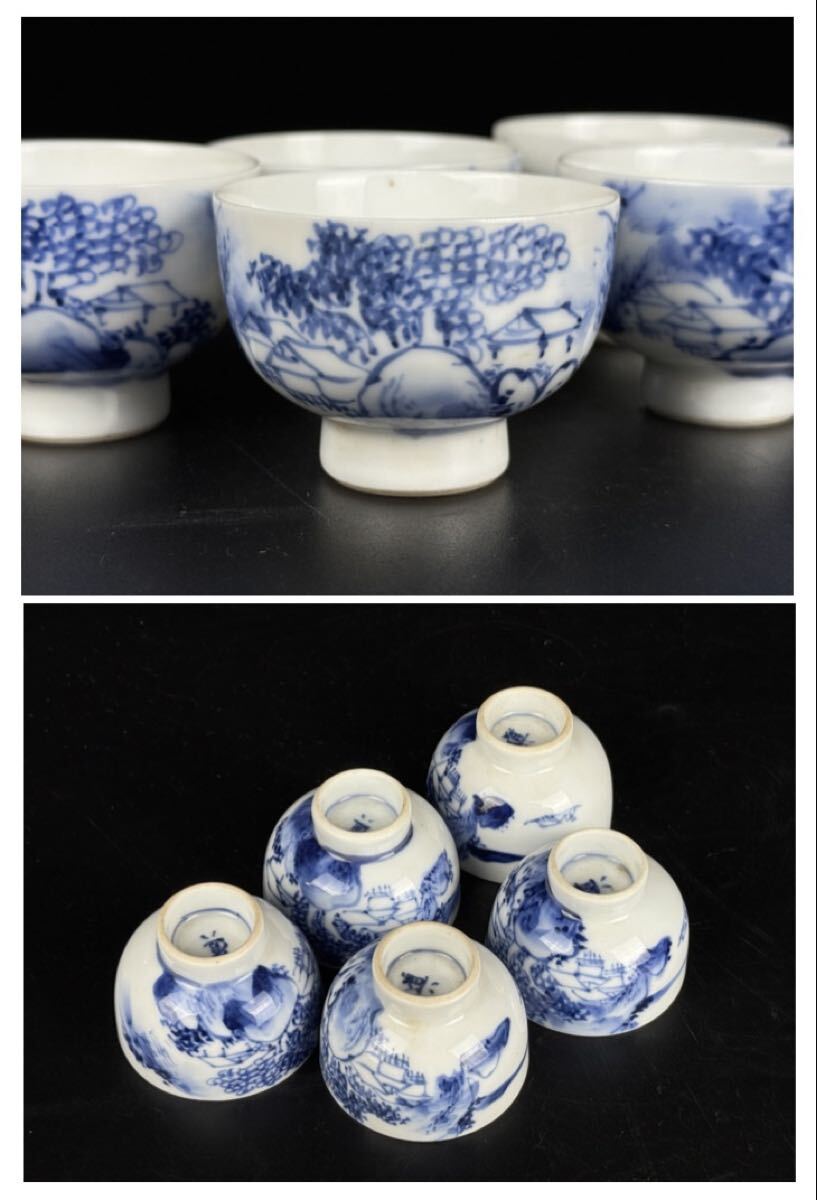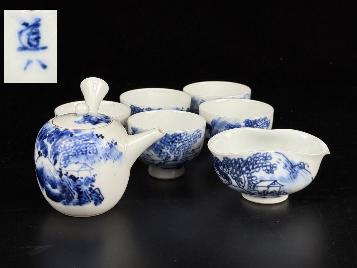 商品名 : 旧家買取品 道八 造 染付家屋画煎茶器揃 煎茶道具 横手急須 湯冷 煎茶碗 古美術品 保証品