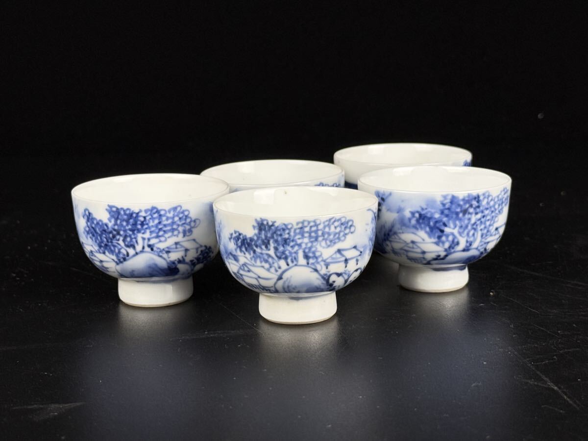 商品名 : 旧家買取品 道八 造 染付家屋画煎茶器揃 煎茶道具 横手急須 湯冷 煎茶碗 古美術品 保証品