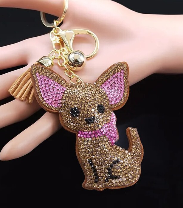 犬 ラインストーン バッグチャーム キーホルダー チワワ ブラウン レディース