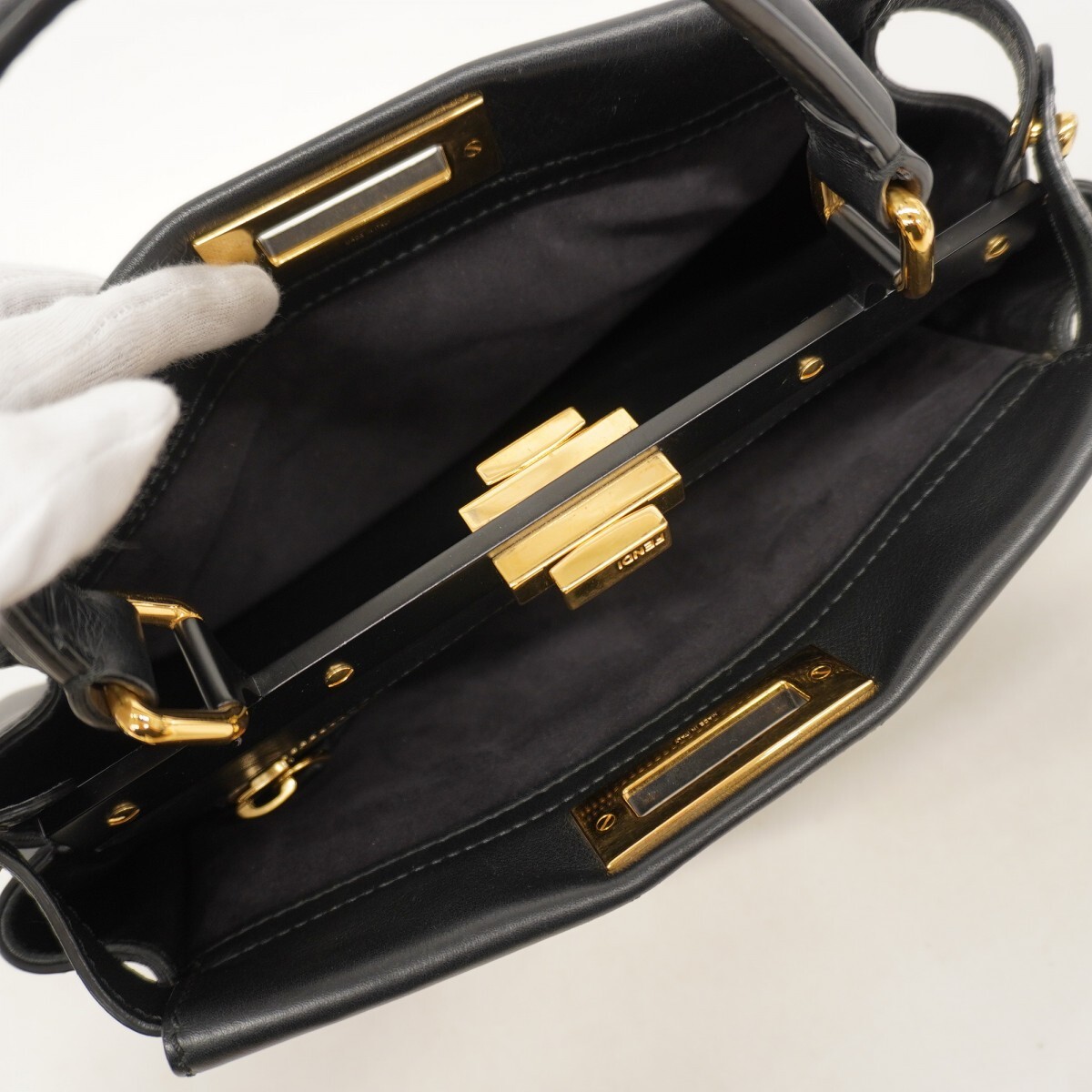 ★SALE【5md4059】フェンディ ハンドバッグ ピーカブー レザー ブラック ゴールド金具【中古】レディース