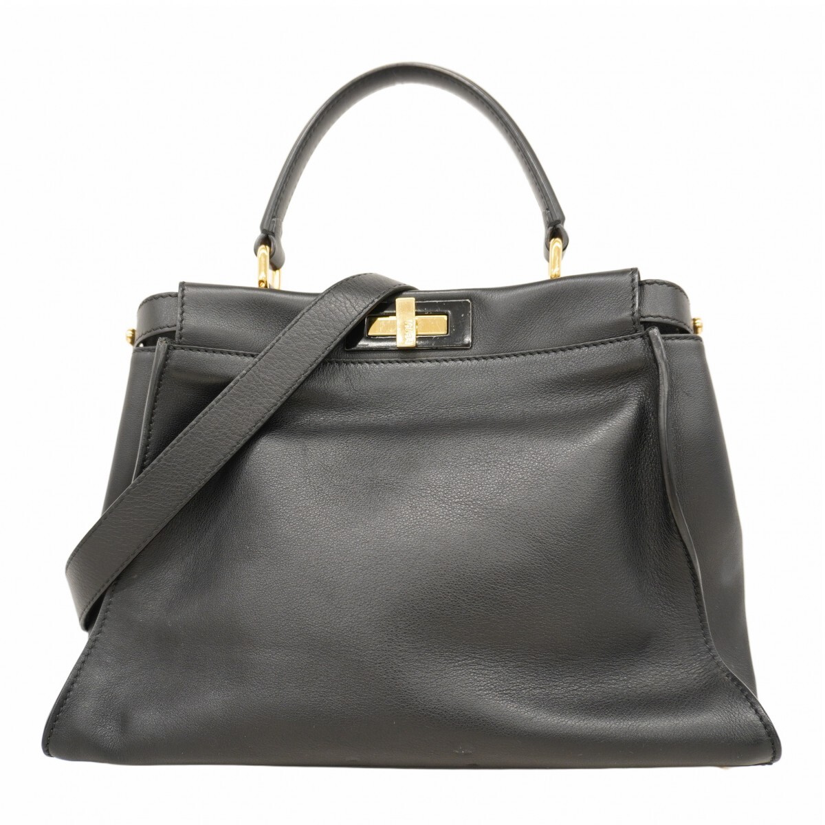 ★SALE【5md4059】フェンディ ハンドバッグ ピーカブー レザー ブラック ゴールド金具【中古】レディース