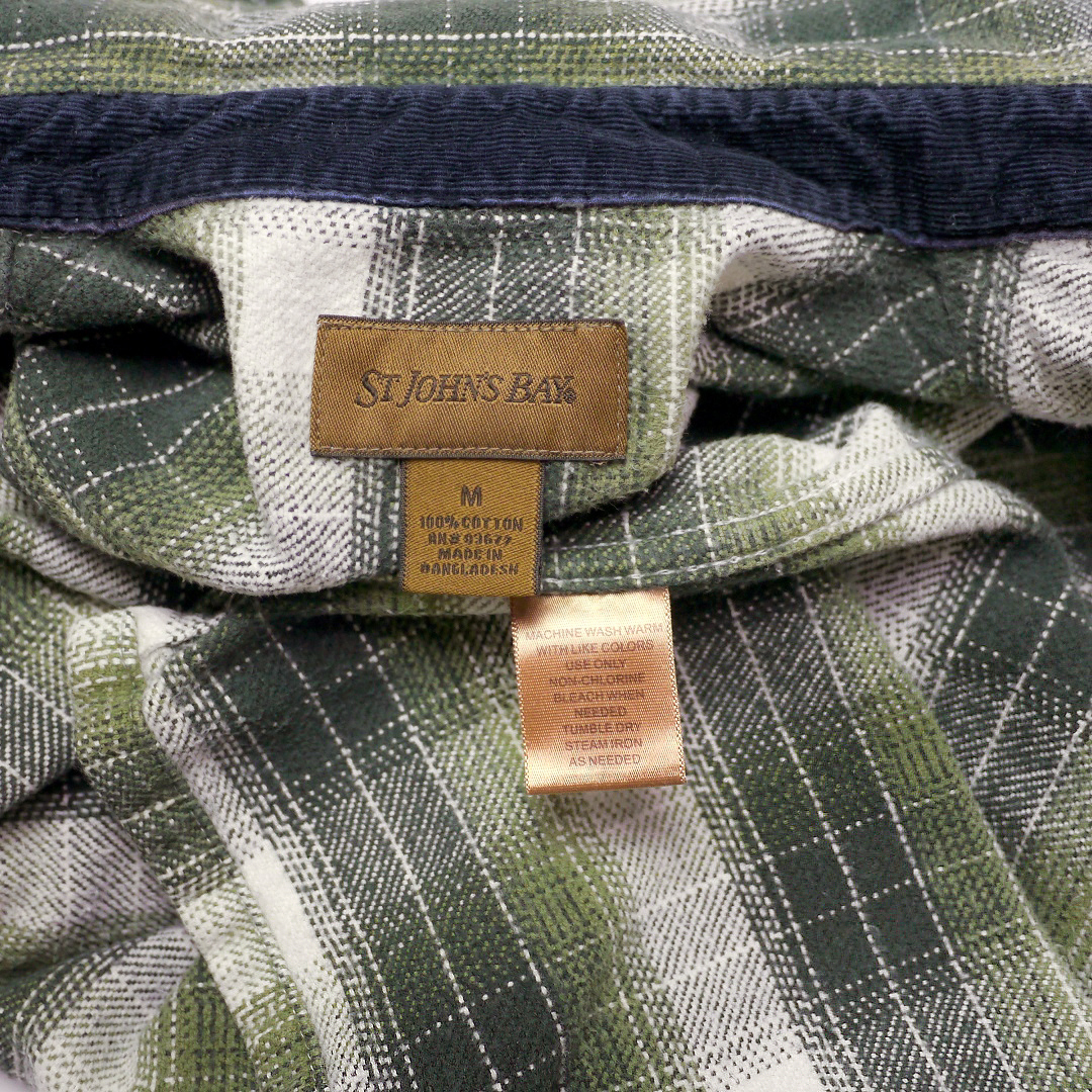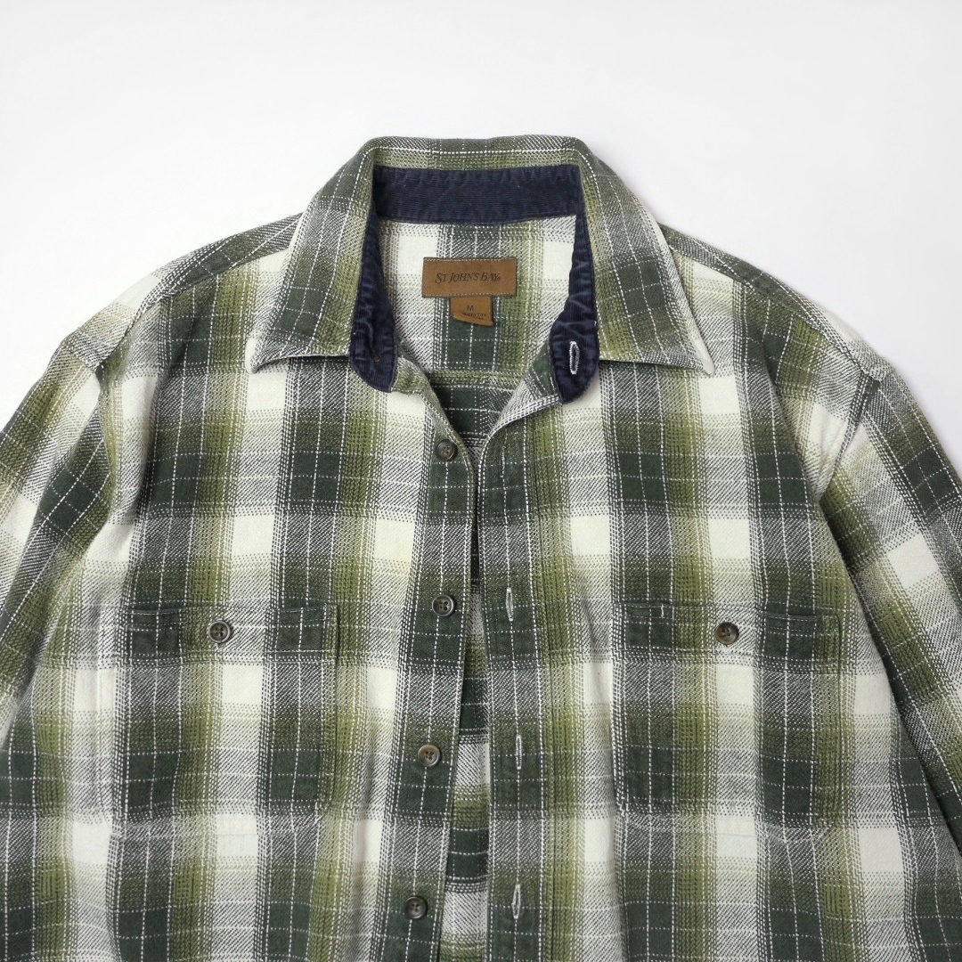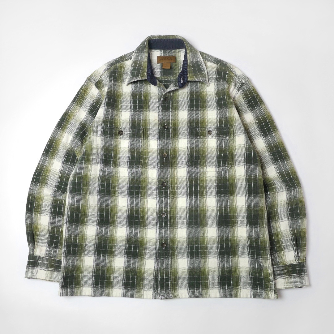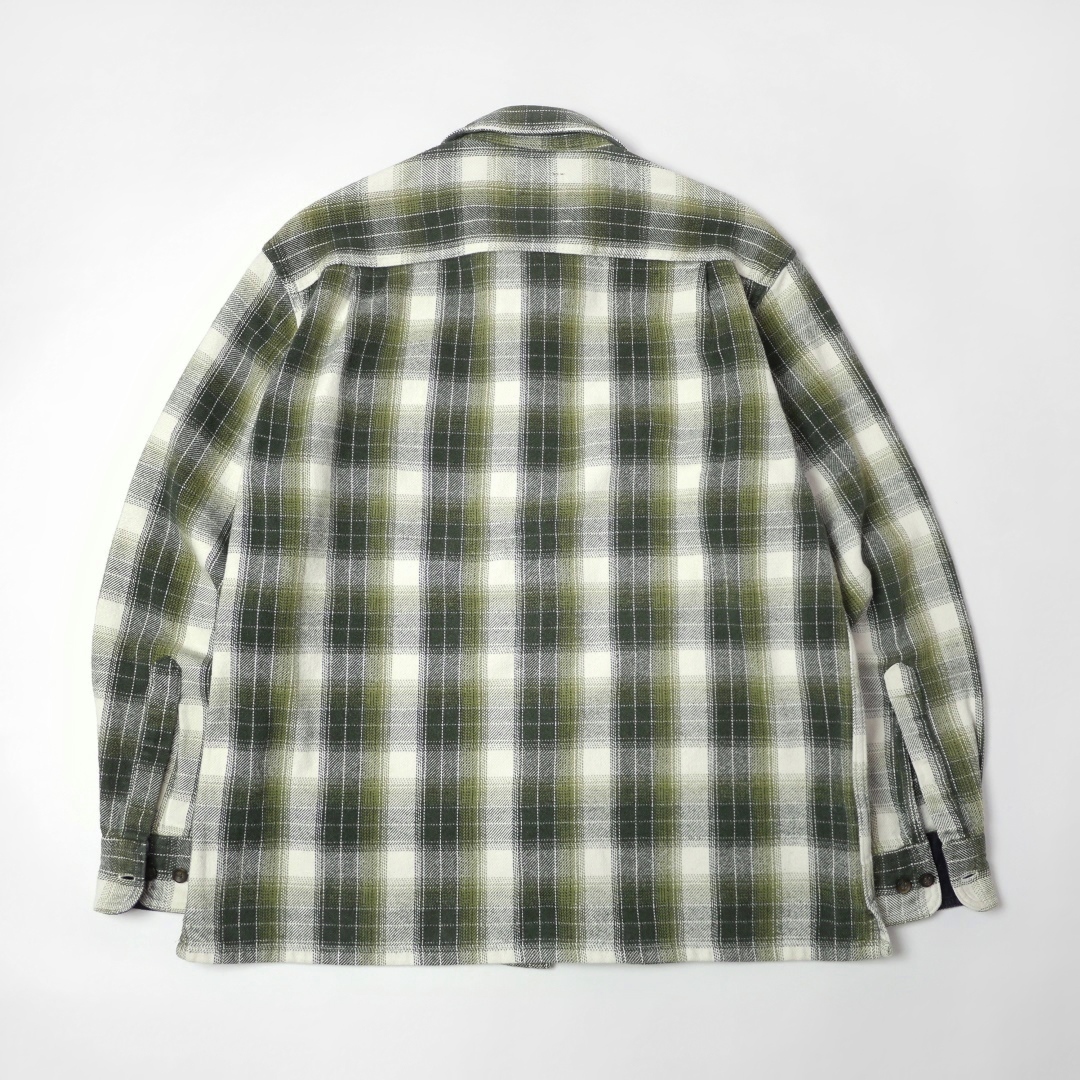 ■ブランド 00s、STJOHN’SBAY ■カラー ボディ=オリーブグリーン、ダークグリーン、ホワイト系 コーデュロイ=ネイビー ■素材 100%COTTON ■詳細 アメリカで購入したセントジョンズベイのヘビーネルシャツです。 00年代ごろのアイテムで玉数の多くないボックスシャツのタイプになります。 生地はオールコットンフランネル、厚みのあるガッシリとした生地感です。 人気のヘビネル、レアなオンブレ系チェックでカラーリングもイイ感じです!! ■状態 コットンネル特有の毛羽立ちと毛玉、コーデュロイの畝(袖先フチ、台襟先)に摩耗、ほぼ分かりませんが第三ボタン左付近(白地)に薄染みあり。 着用に問題あるダメージはなく良好です。 ■サイズ 表記 M (着用感M相当、肩幅身幅は大きめの作りです *実寸参考下さい) 着丈 71cm 肩幅 49cm 身幅 55cm-57cm サイドプリーツあり 裾幅 57cm 裄丈 82cm 脇袖丈 49cm 肩袖丈 58cm ■注意事項 状態は細かく確認しておりますが、傷や汚れの見落とし、実寸誤差、色味差異など生じる場合がございます。 不明な点がありましたら入札前にご質問下さい。 商品にあわせて洗濯やクリーニングメンテナンスを施しておりますが、ビンテージやアンティークなど中古品になりますので特性のご理解をお願いします。 |