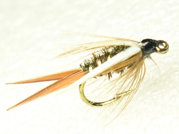 ホワイトウイングがインジケーターの役割で、水中での視認性が高いニンフです。