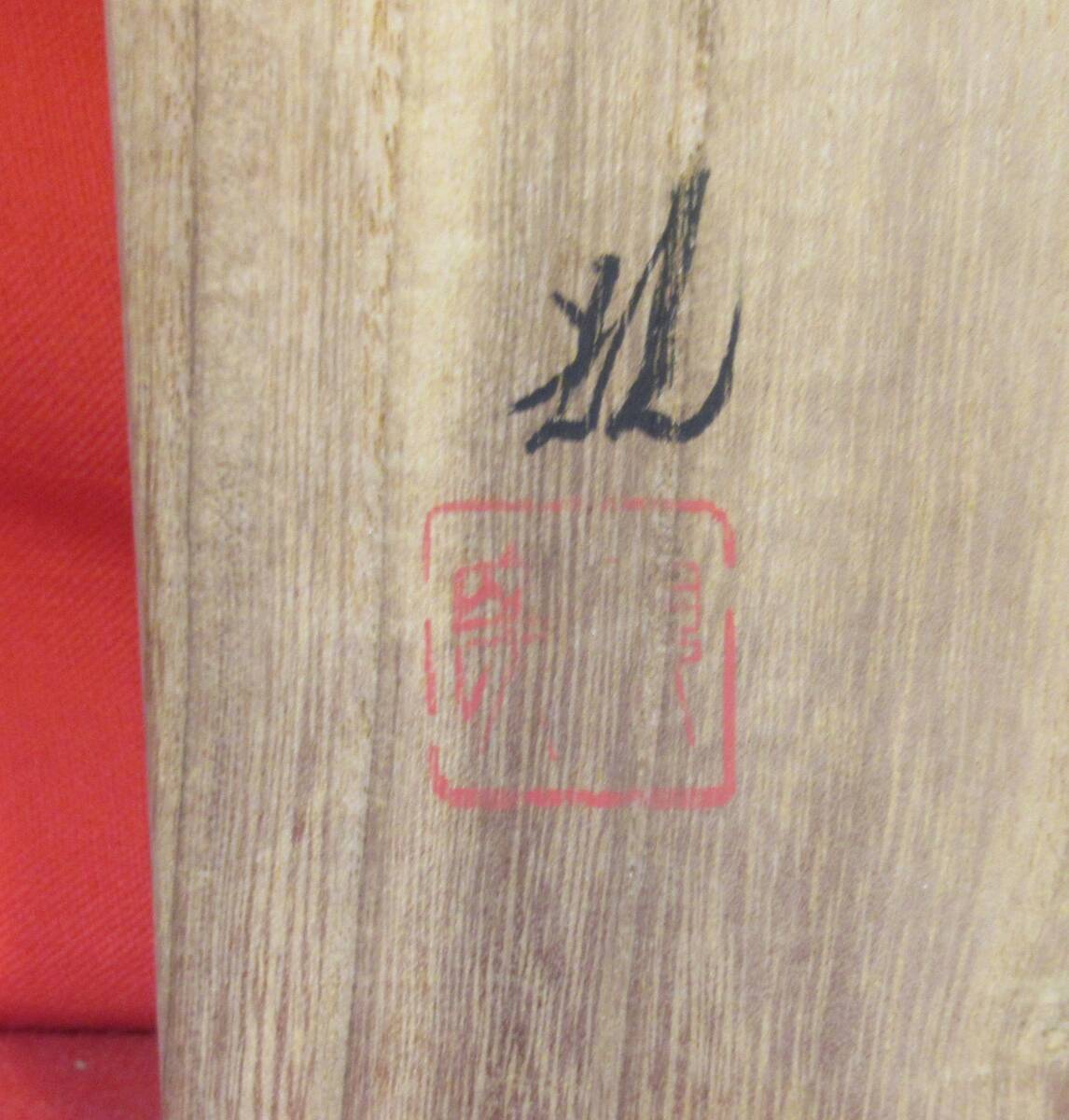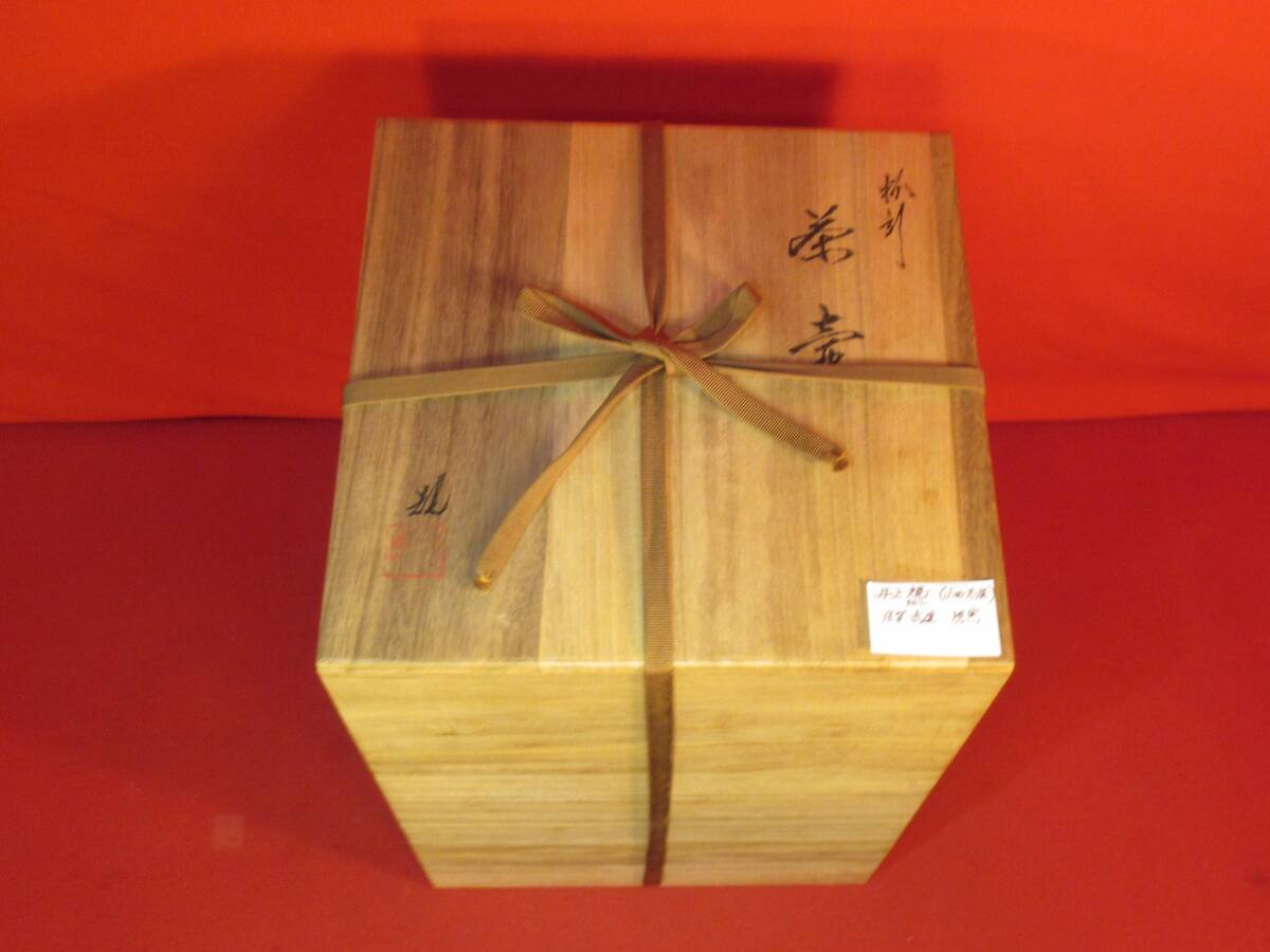 サイズは、口径11,3×胴径24×高さ25×高台径107㎝です。ホツやニュウはありません。美品です。口覆仕覆:鵬雲斉好み紺地鳳凰金襴です。