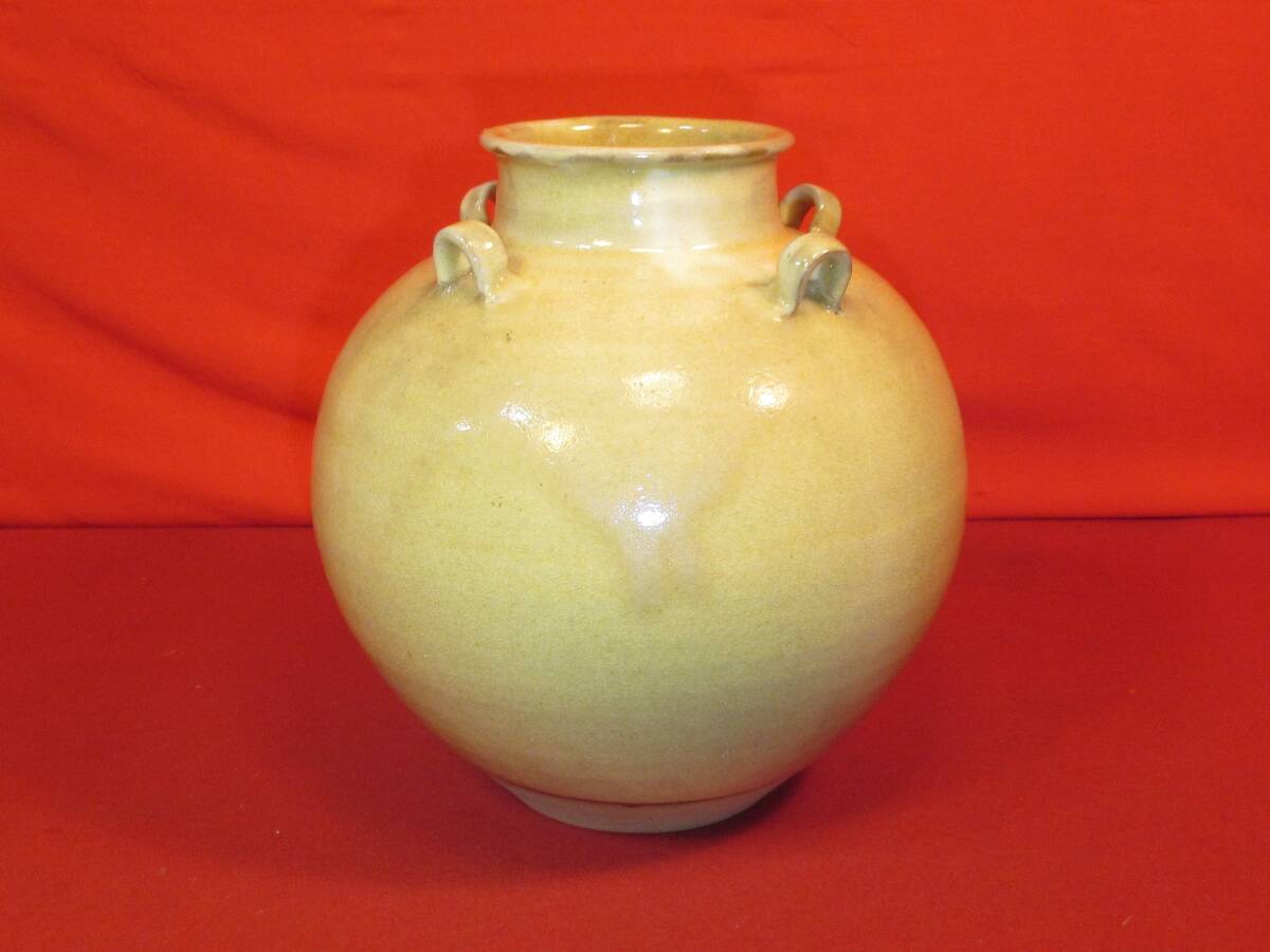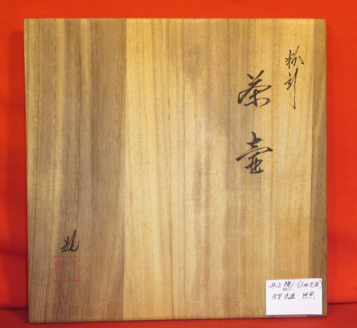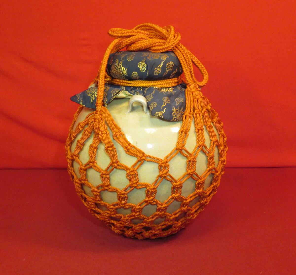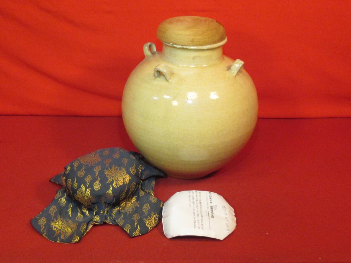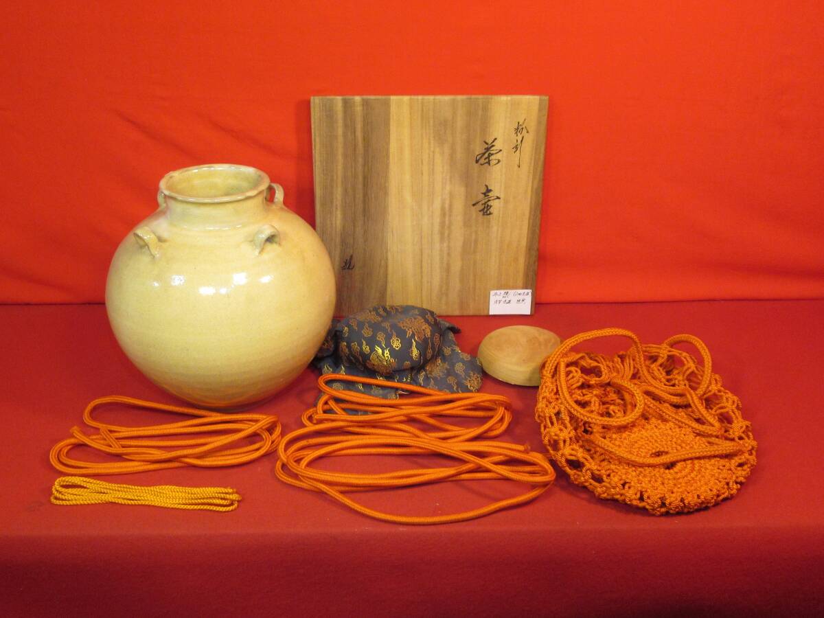 茶道具『小田志焼 粉引き茶壺一式「井上規造」高さ25㎝ 共箱 口覆仕服:紺地鳳凰金襴 飾紐一式』飾茶壷 四耳壺 炉開き 口切 茶事 千家十職