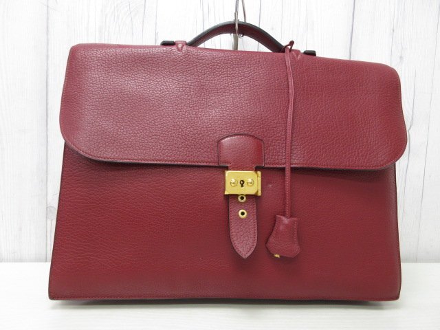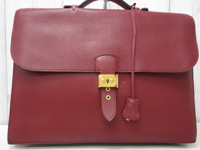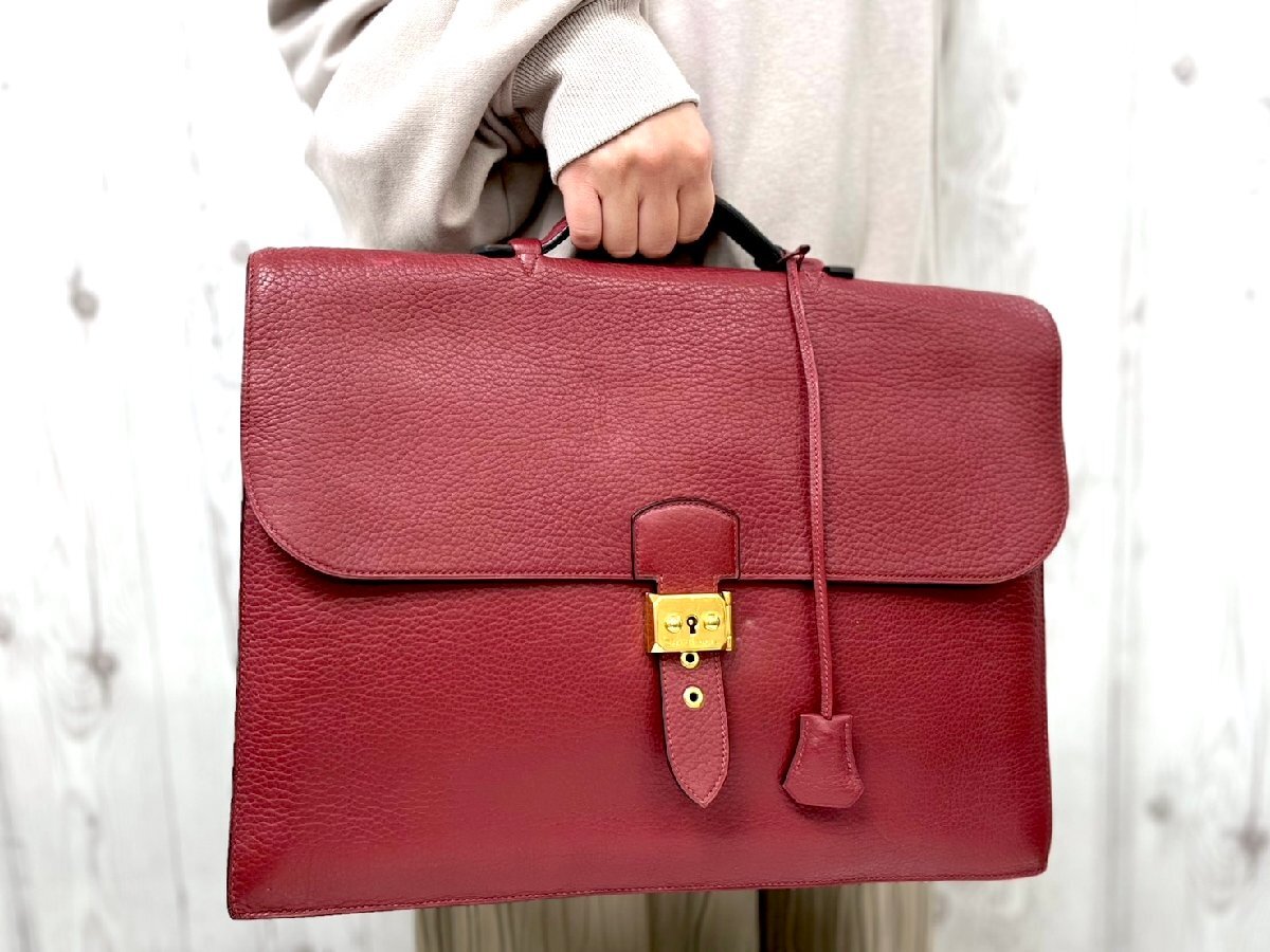 | 極美品 HERMES エルメス サックアデペッシュ ビジネスバッグ ハンドバッグ バッグ レザー 濃赤色 A4収納可 メンズ 91251Y | ||