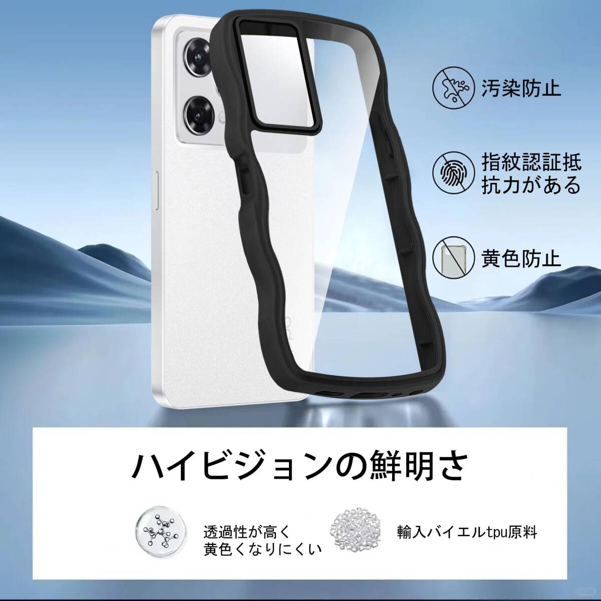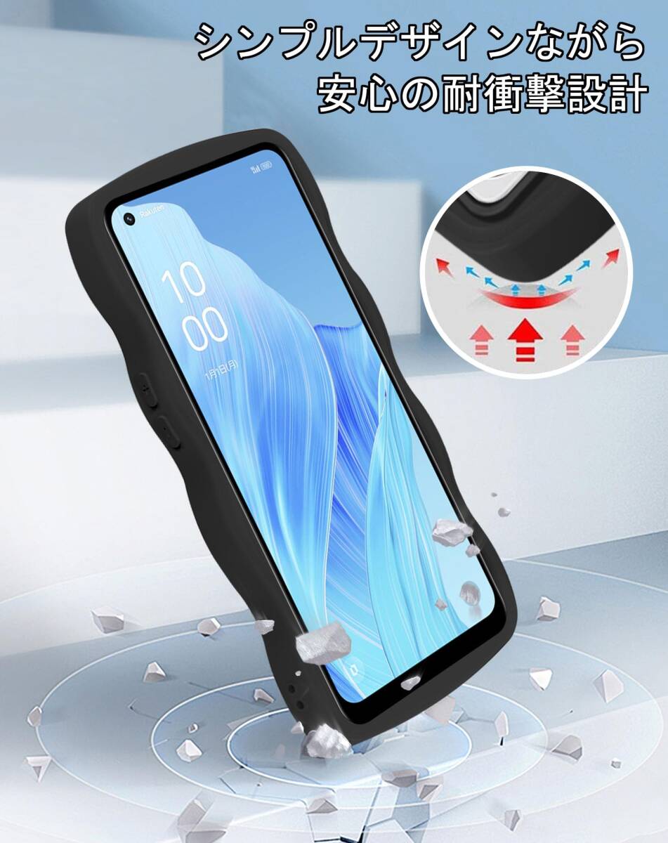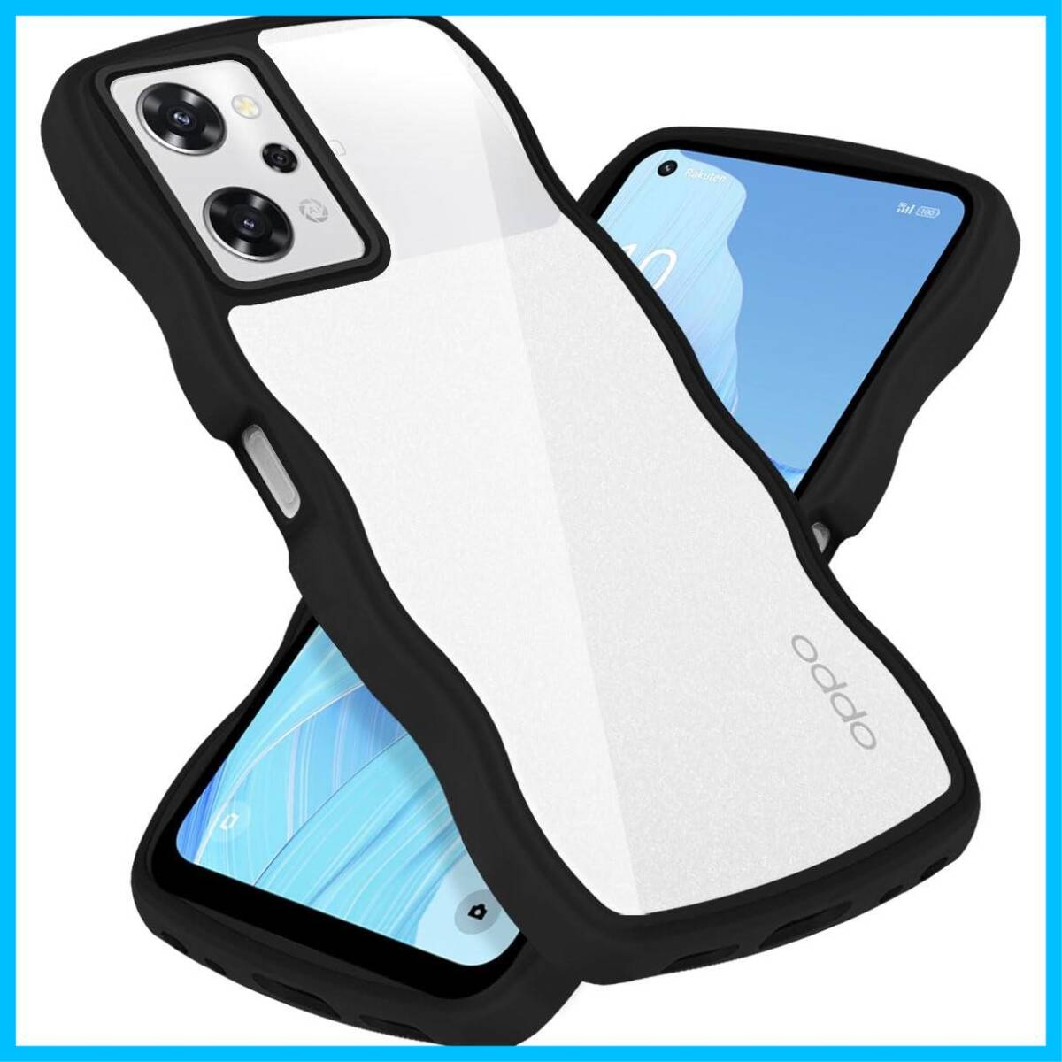 クリア OPPO Reno9 A/OPPO Reno7 A ケース かわいい 波状フレーム うねうね 耐衝撃 OPG04 スマホケース 滑り止め 人気 可愛い カバー 落下防止 ワイヤレス充電対応 (ブラック)