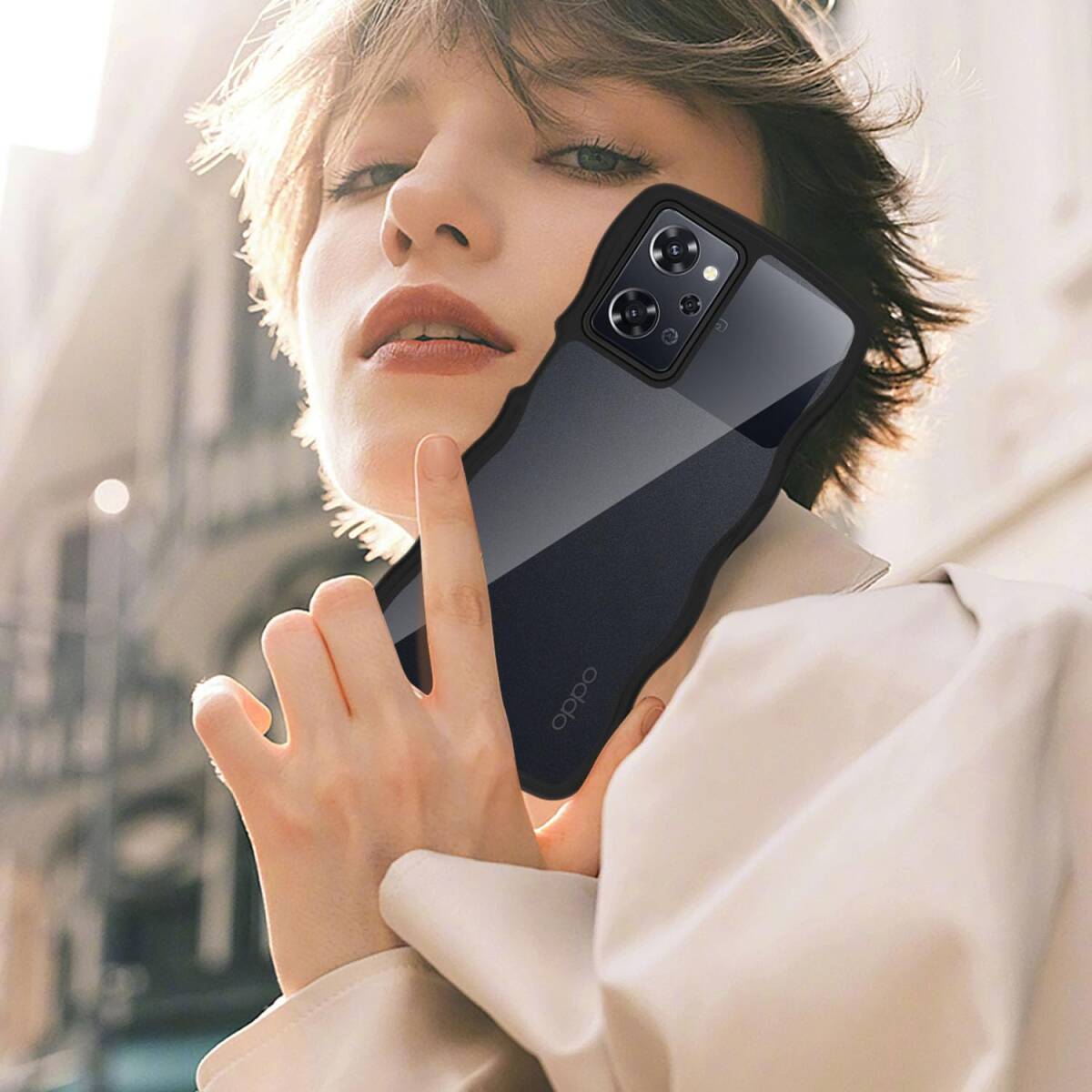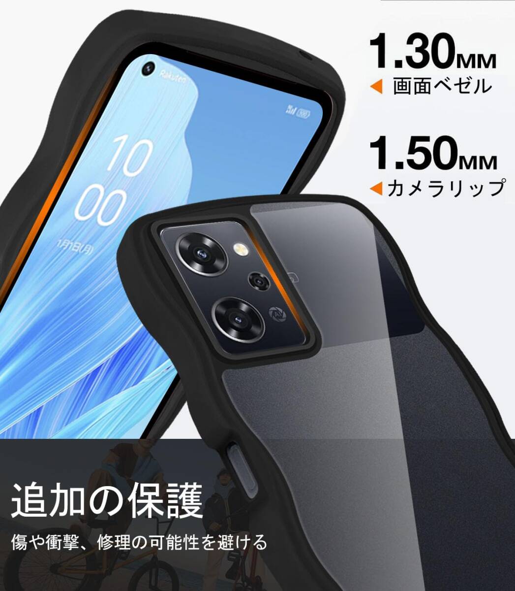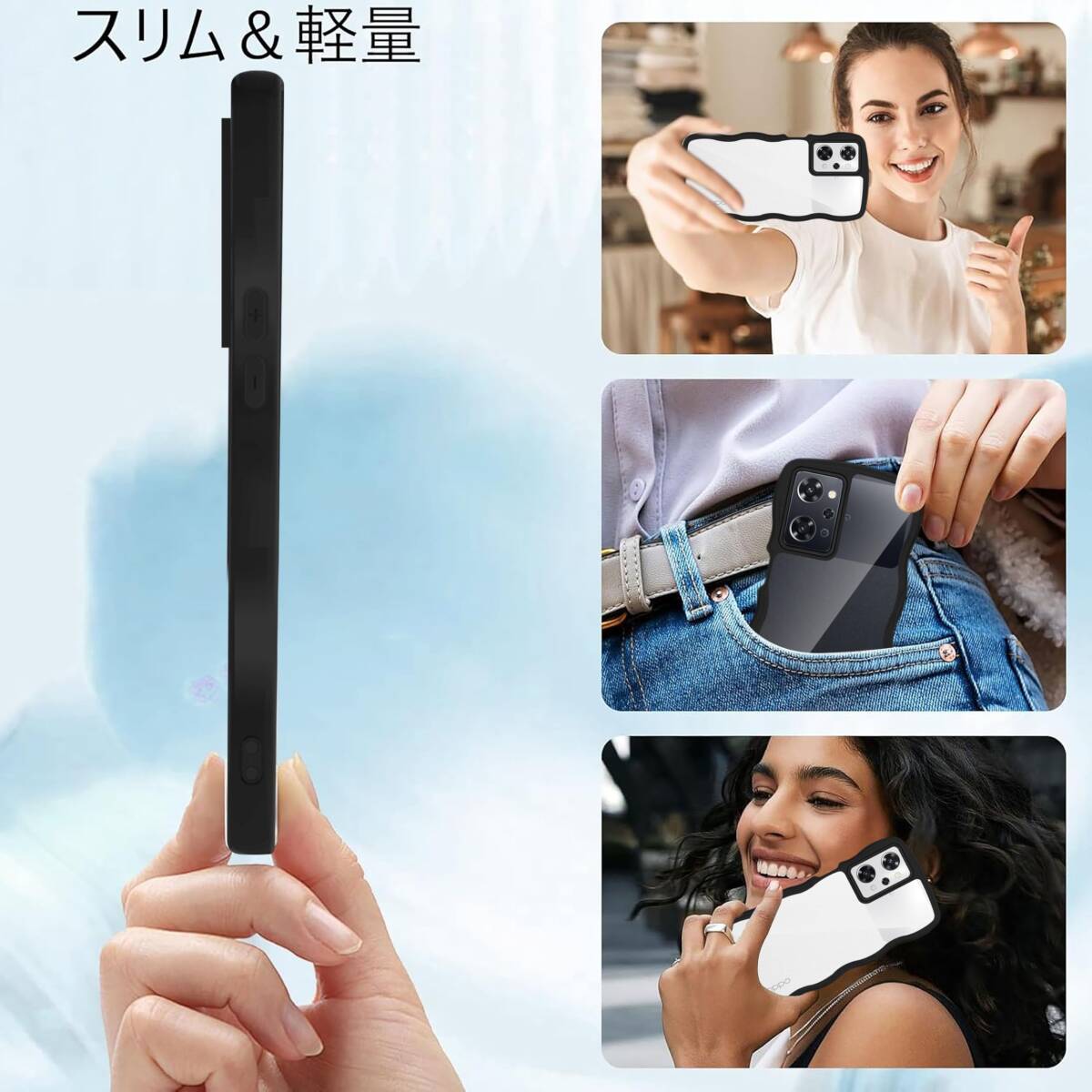 クリア OPPO Reno9 A/OPPO Reno7 A ケース かわいい 波状フレーム うねうね 耐衝撃 OPG04 スマホケース 滑り止め 人気 可愛い カバー 落下防止 ワイヤレス充電対応 (ブラック)
