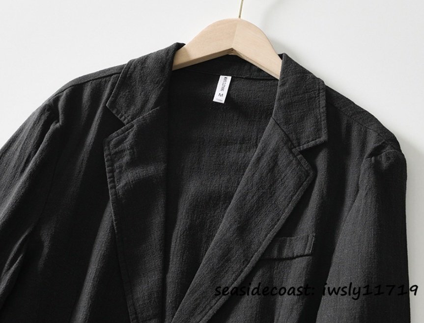 超希少*テーラードジャケット メンズ 春夏秋 リネンジャケット 麻100% 無地 清涼感 通気性 ブレザー 麻スーツ 紳士服 鮮やか ブラック 3XL