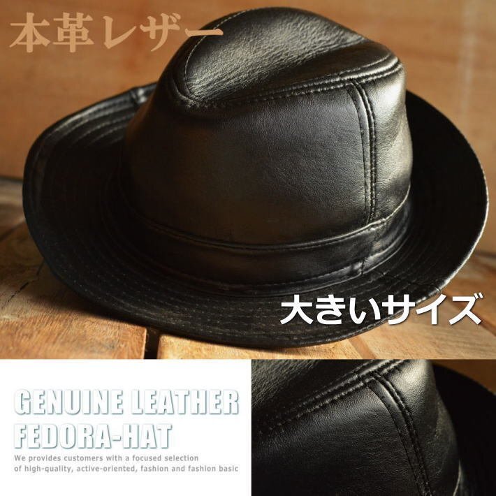 大きいサイズ 本革 レザー 中折れハット ハット 帽子 メンズ FEDORA HAT フェドラハット 7998635BIG ブラック 新品 1円 スタート