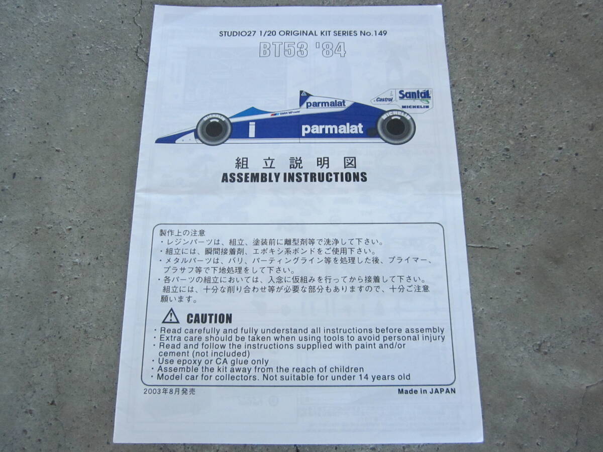 スタジオ27 1/20 ブラバム BT53 BMW 1984 組立説明書 中古品です。