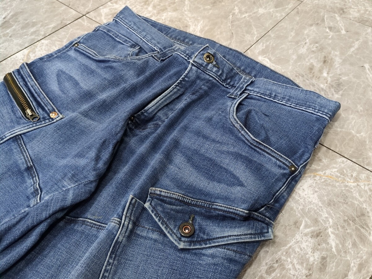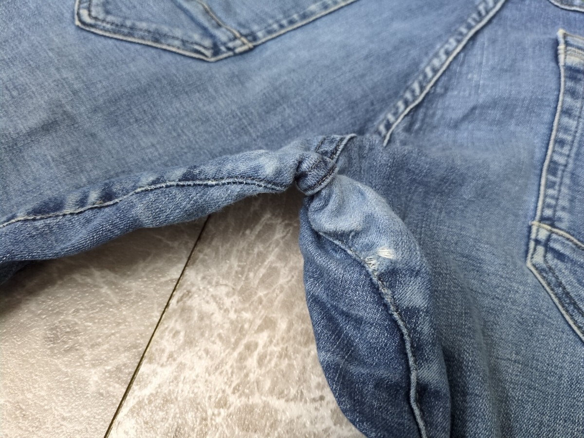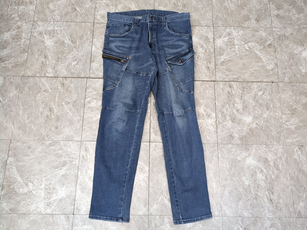 | 正規品です。 【肩幅】 【着丈】 【身幅】 【袖丈】 【ウエスト】84 【総丈】104 【股下】76 【裾幅】 後ろ腿、股の下付近に擦れキズ穴 使用感があります |