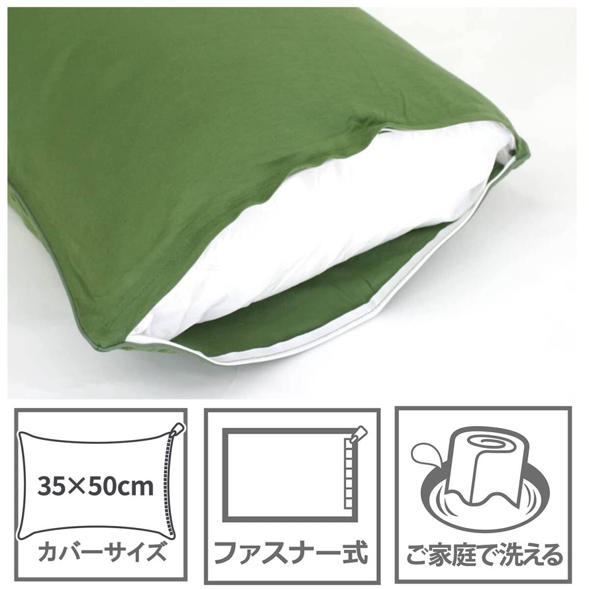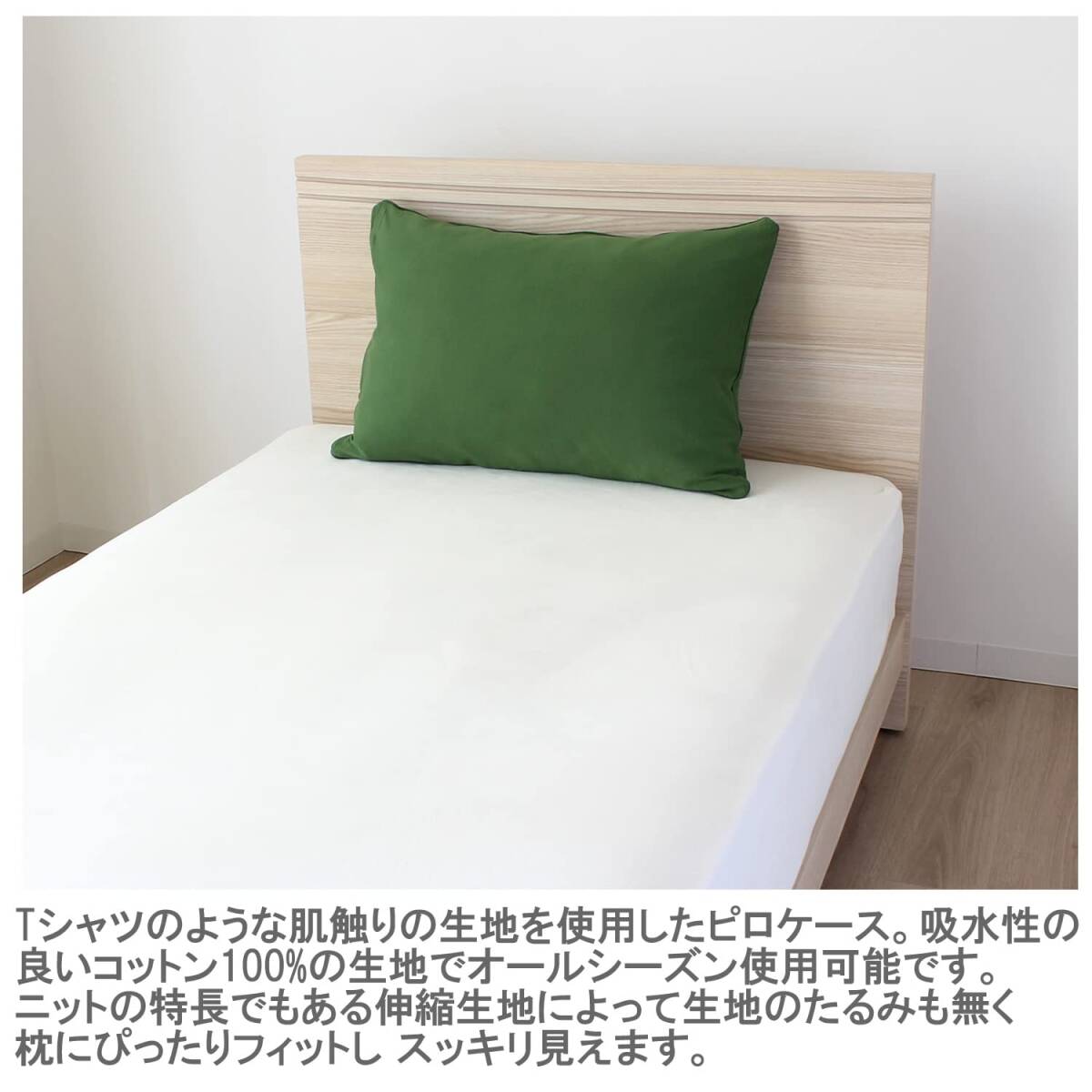 メリーナイト 枕カバー 無地カラー オリーブグリーン 約35×50cm ファスナー式 まくらが入れやすい 綿100% ニット素材 ピタッと装着